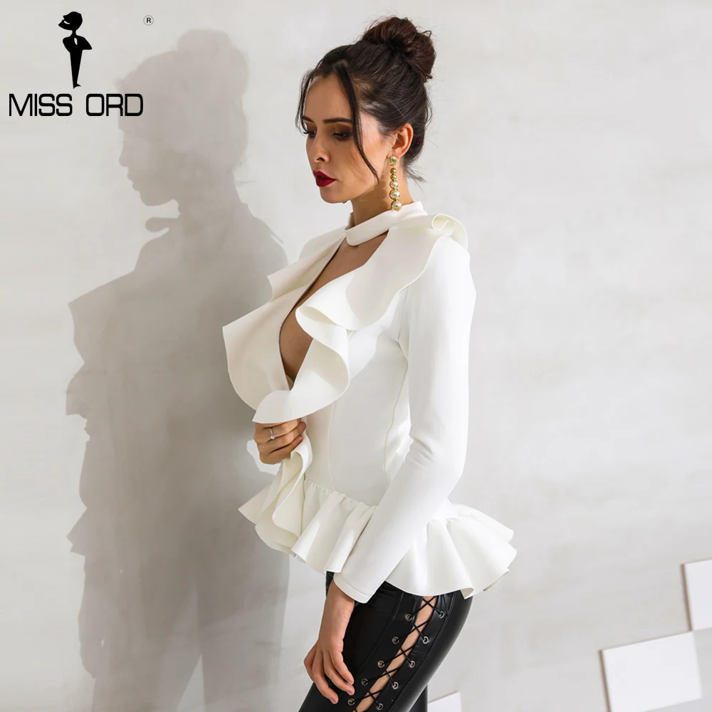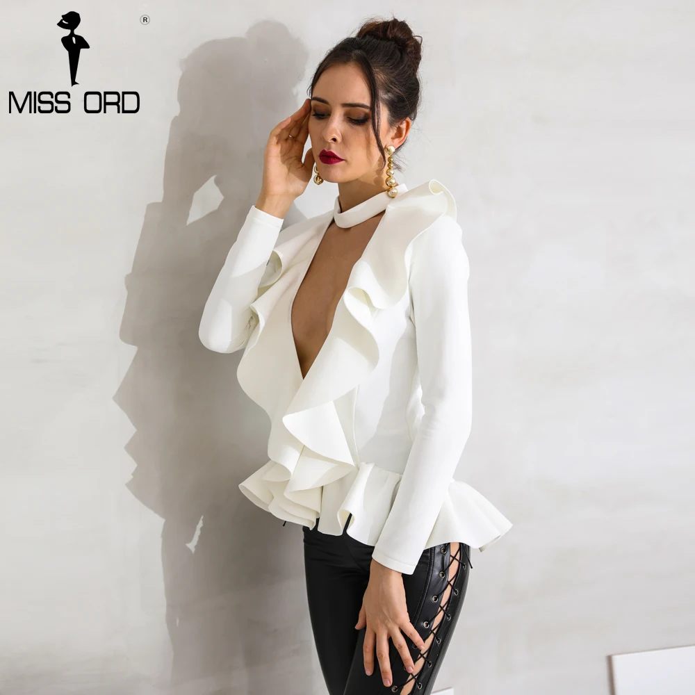 Missord 2021 сексуальный глубокий v-образный вырез с длинным рукавом, однотонный элегантный топ FT8759