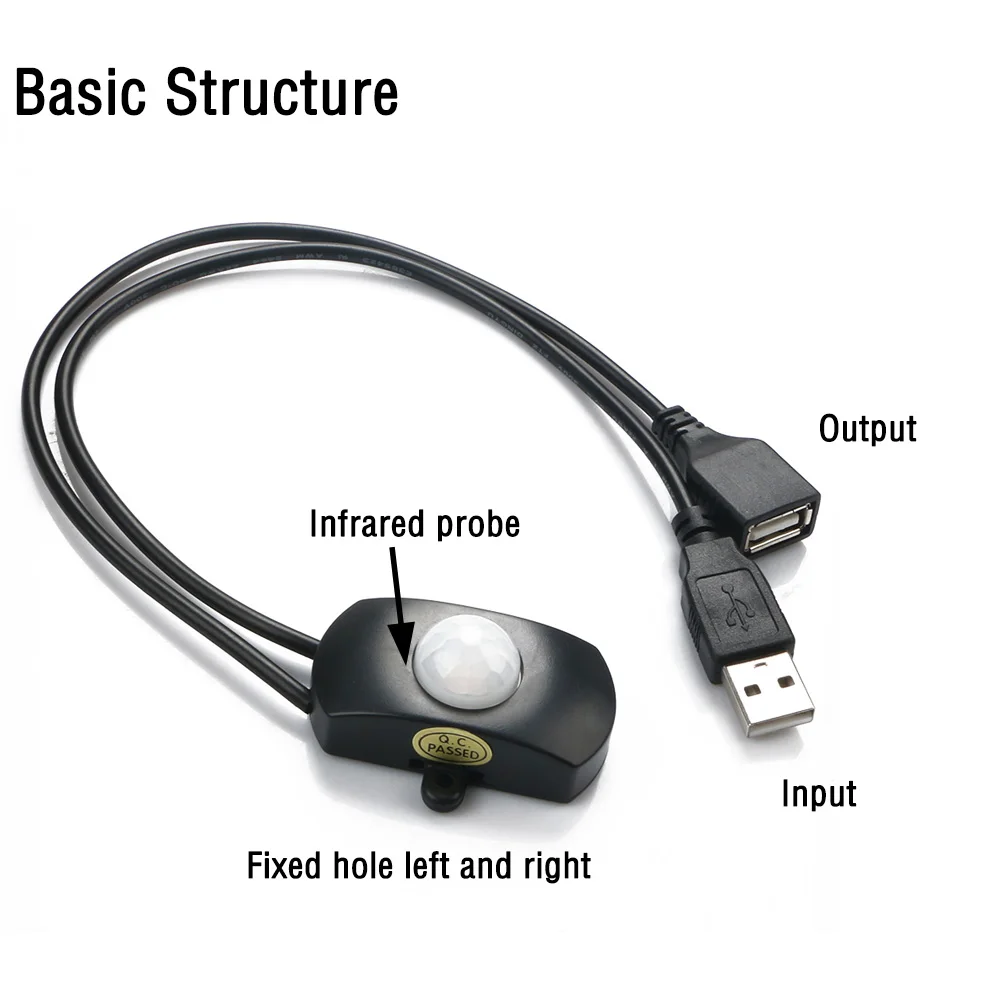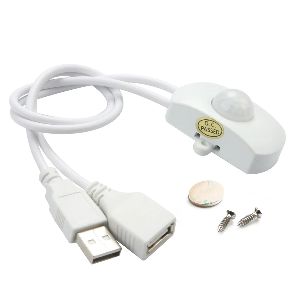 Инфракрасный датчик движения тела PIR с автоматическим включениемвыключением, миниатюрный светодиодный детектор людей, USB-переключатель для туалета, коридора, ванной, 5-24 В постоянного тока, 2 А, 1 шт.