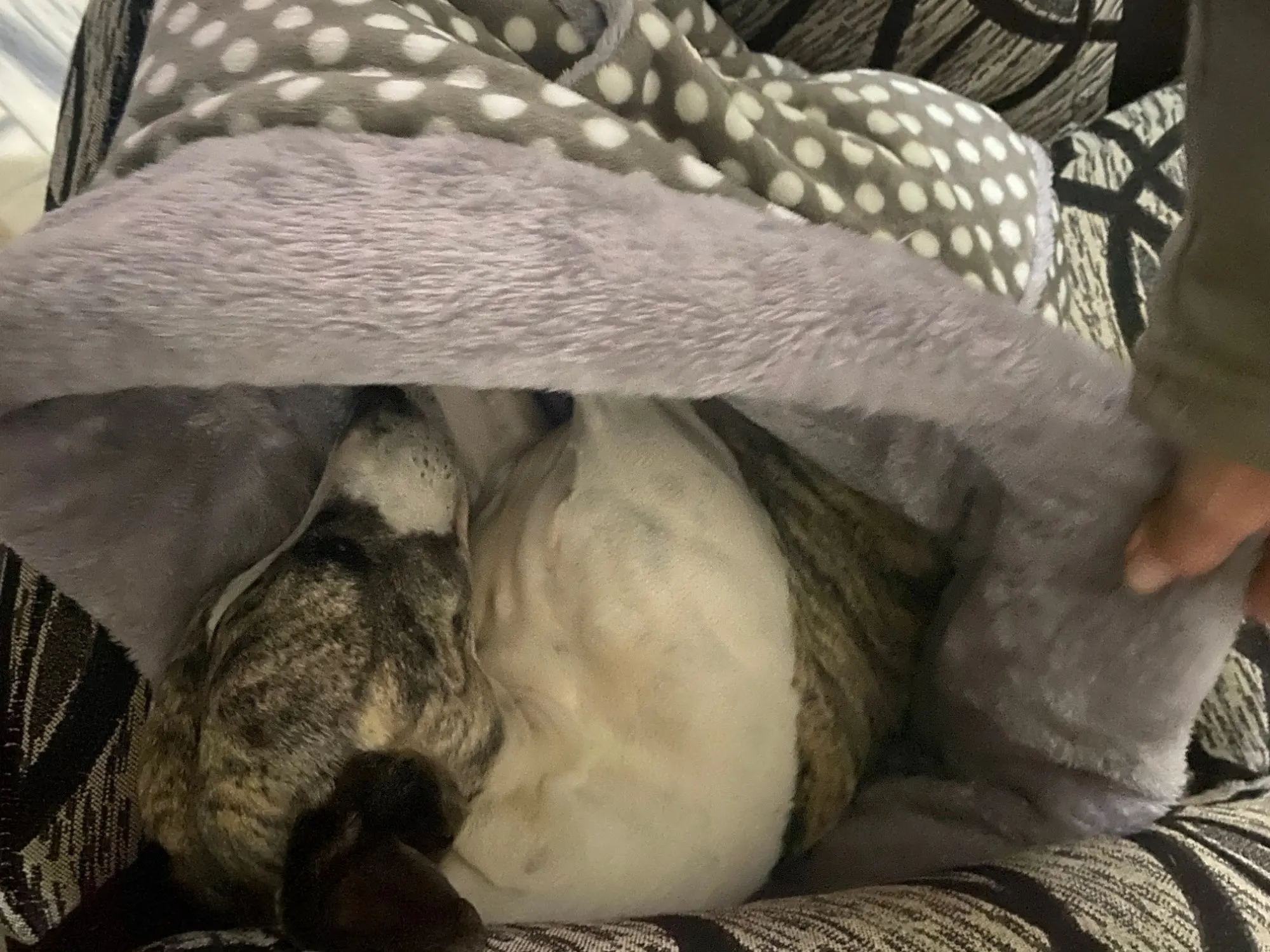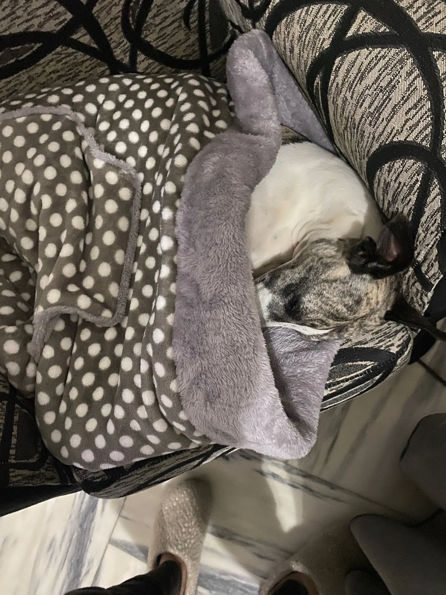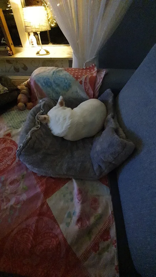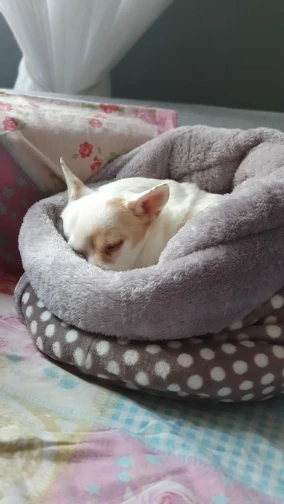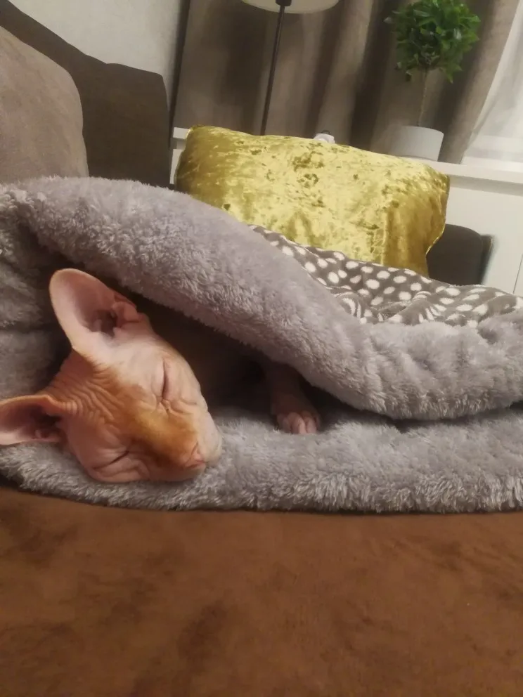 Нашей карликовой таксе очень понравился мешок.Днём спит на нем: тепло и все видно, ночью- в нём,в глубине: тепло и темно.