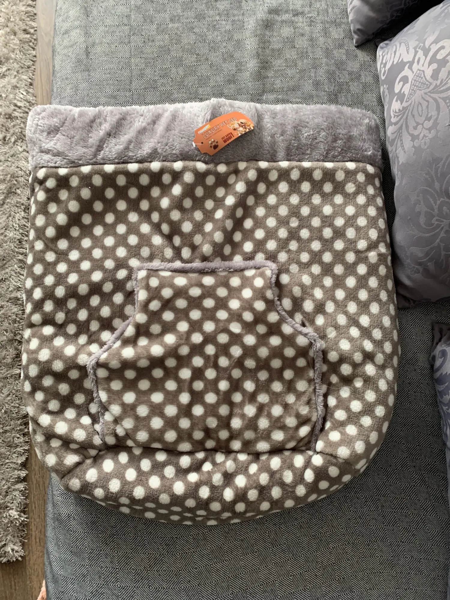 Очень удачная покупка! Раньше собака "копала" покрывало, чтобы залезть под него, и спала там. Теперь с удовольствием нежится в этом мешке. Он мягкий, пёс в восторге. Может и внутрь залезть, и поиграть с ним.