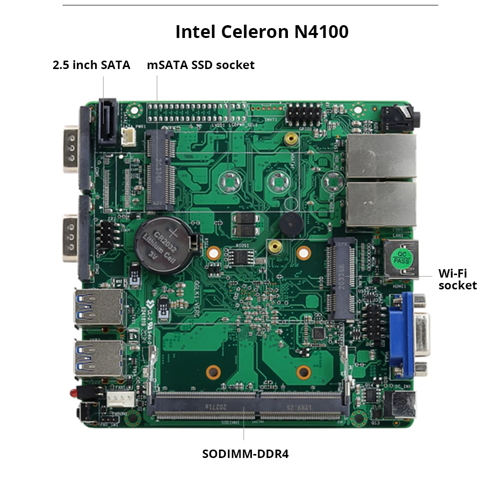 Intel Celeron J4125, 4 cores 4 threads, 2.0GHz, up to 2.70GHz