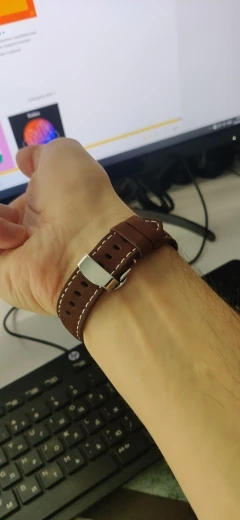 Отличные ремни, два уже изношены, купили еще два. Очень удобные, качество на высоте. К этим смарт часам подходят прекрасно, смотрится отлично. На фото есть старый затасканный ремешок - надо сказать он очень крепкий, на моем муже такое обычно прямо горит, но эти ремешки показали себя достойно. Качество за свою цену отличное, кожа натуральная, обработана добротно. Прошивка крепкая. Крепление очень удобное, - один раз под своб руку настроил и можно больше не заморачиваться, удобно для тех, кто на ночь снимает часы. В общем рекомендую пролавца и товар однозначно!