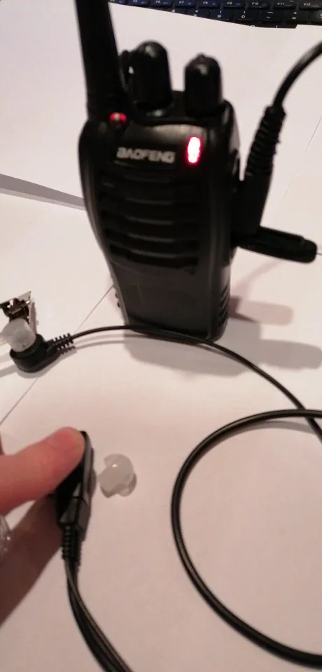 Очень быстрая доставка, пришла через неделю. Качественный звук. Работает с bf888s (конечно, не с мобильными телефонами из-за его разного сигнала). Провода достаточно длинные. Кусачки очень удобны и могут вращаться, так что их можно прикрепить в любом месте, чтобы оставаться в положении. Это занимает около 1 секунды между нажатием кнопки микрофона и walkie talkie получает сигнал. Поставляется с запасным разъемом для наушников