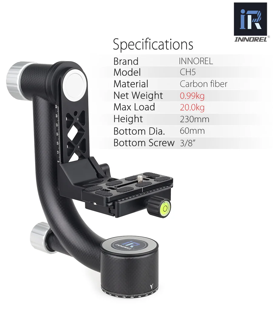 Профессиональная шарнирная головка штатива INNOREL CH5 с консольным штативом, панорамная головка с высоким покрытием на 360 градусов для тяжелых объективов цифровой камеры