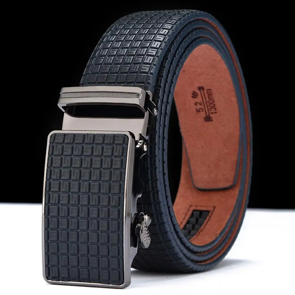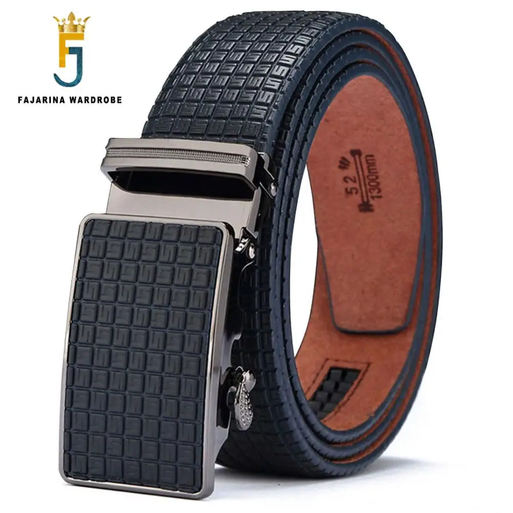 Ремень FAJARINA N17FJ430 мужской из воловьей кожи, дизайнерский пояс в клетку, автоматический Повседневный из металлического сплава, голубой, шириной 35 мм