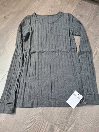 Базовый уютный и исключительно мягкий хлопковый топ рубчиком c вырезом для большого пальца