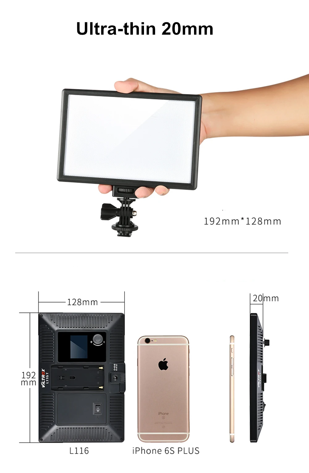 VILTROX L116T светодиодный светильник принимает новейший светодиодный дизайн сот. Он обладает высокой яркостью, естественным и мягким освещением, стабильной цветовой температурой. Подходит для портретов/детей/свадьбы и т. Д.
