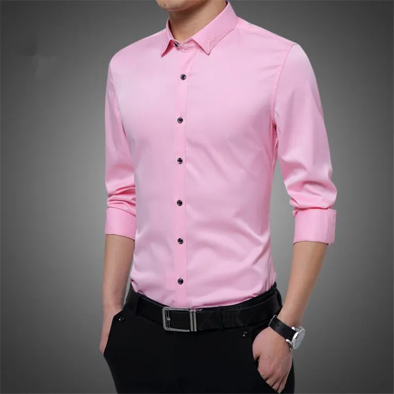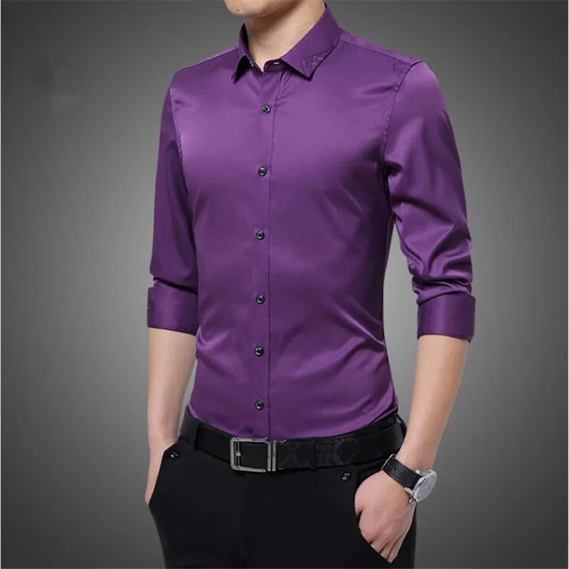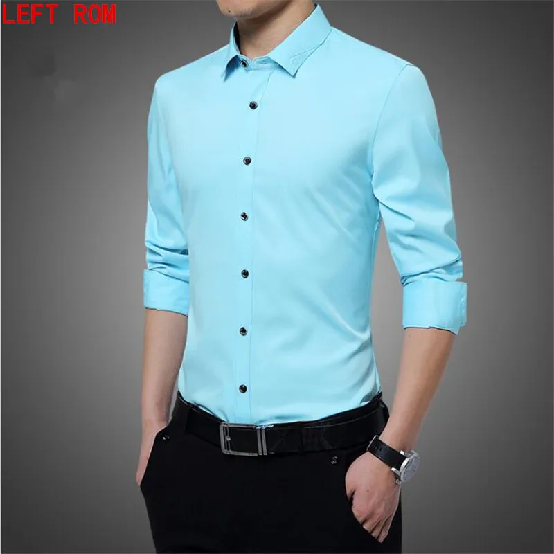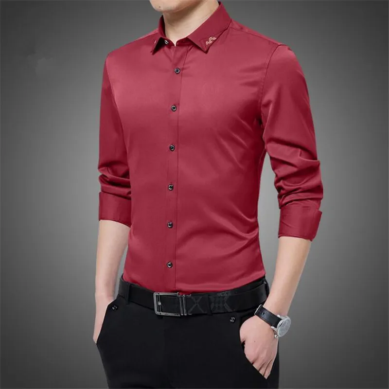Мужская рубашка с длинным рукавом, осень 2017, новая модная дизайнерская Однотонная рубашка высокого качества, не требует глажки, приталенная деловая рубашка 5XL