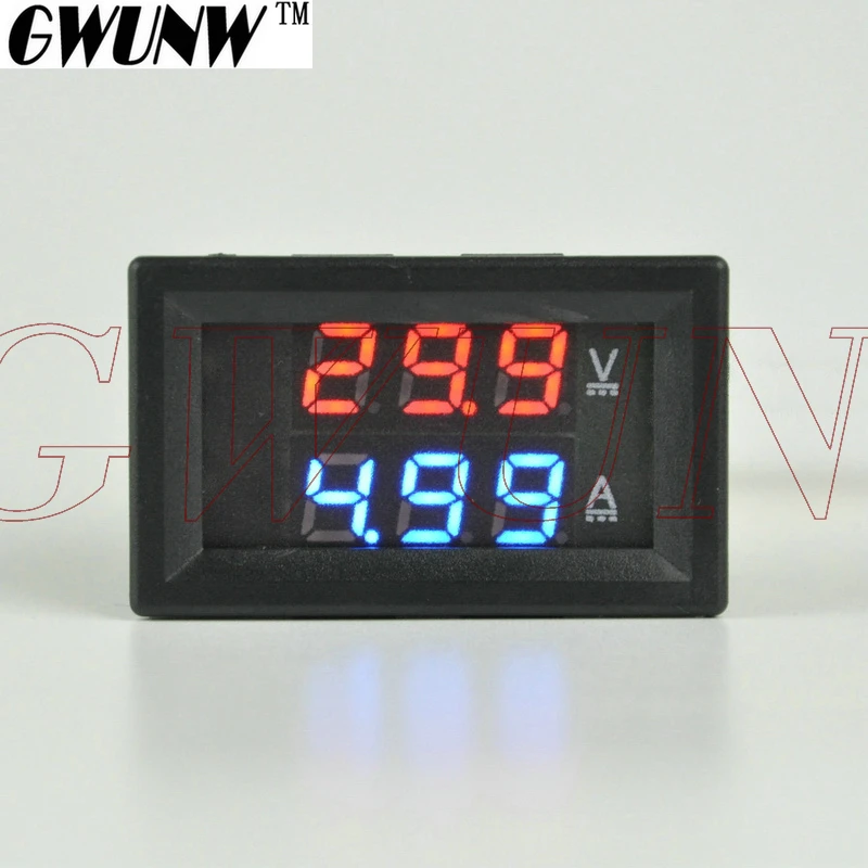 Цифровой амперметр постоянного тока GWUNW BY32A 0-30 в 0-5A, измеритель тока, светодиодный вольтметр, двойной дисплей, красный, синий, светодиодный