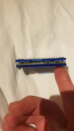 С одной стороны, приятно, что размер выреза для GPIO header позволяет тянуть весь RPi через, так что вы можете установить корпус на RPi с кабелем припаянным к нему. С другой стороны, нижняя часть корпуса находится непосредственно на плате, что плохо, так как оно позволяет любой влаге короткого замыкания платы .. Добавьте четыре небольших дистанционных прокладки, чтобы сделать трюк. Более того, вырез для охлаждения не совпадает с позицией процессора