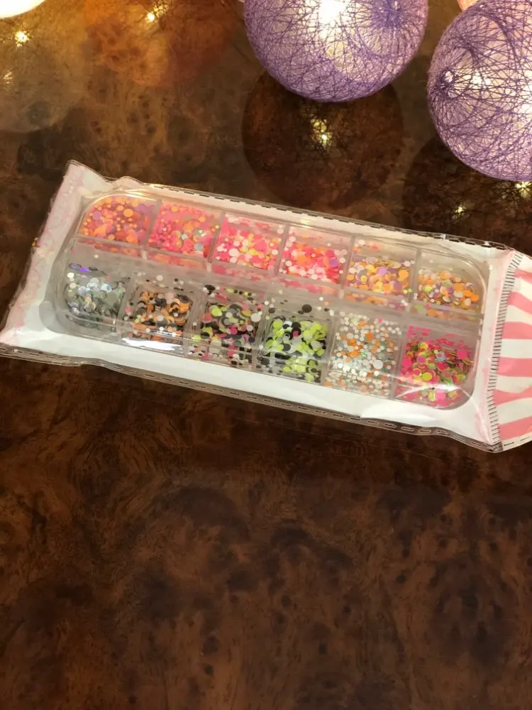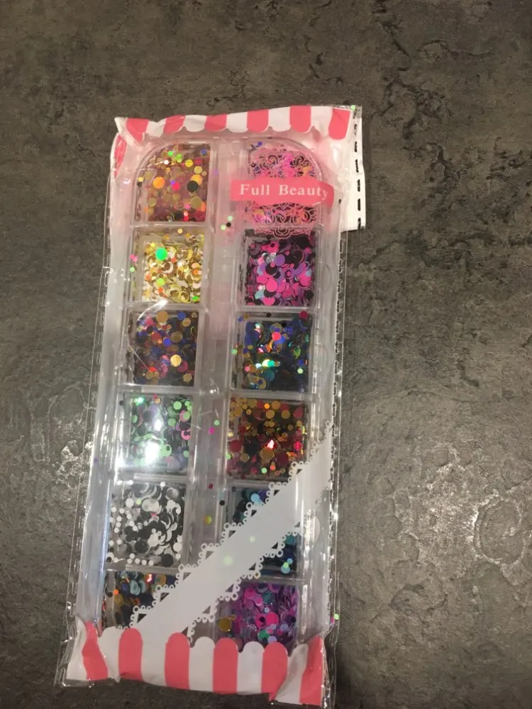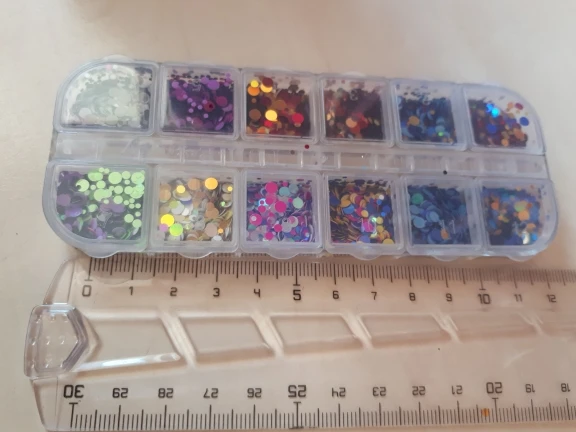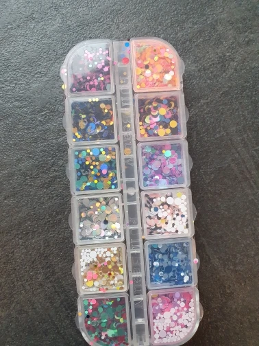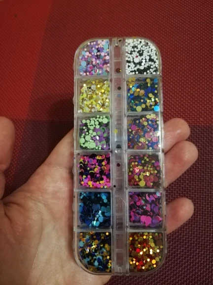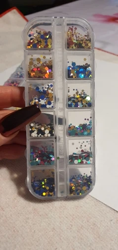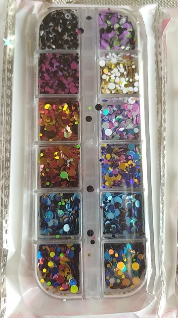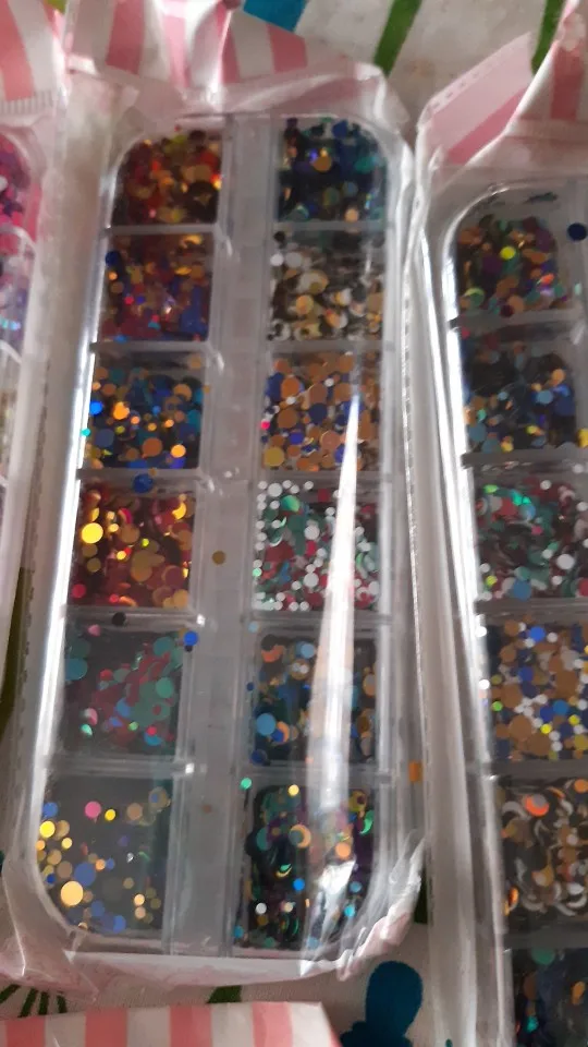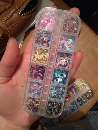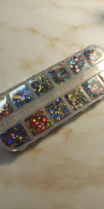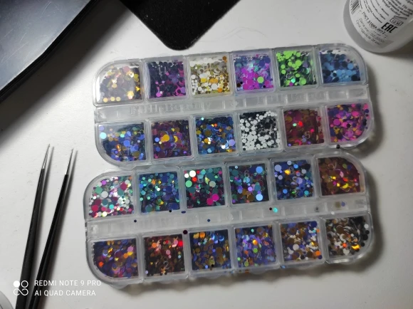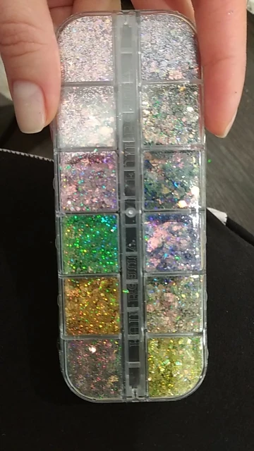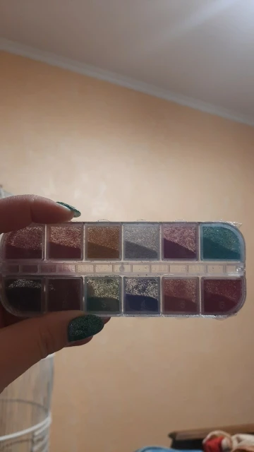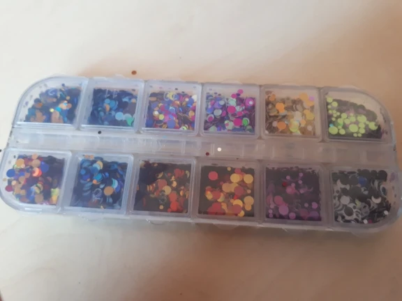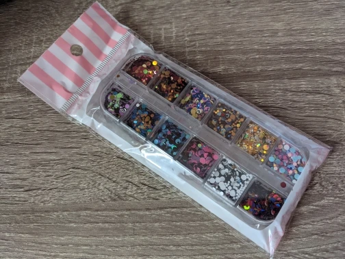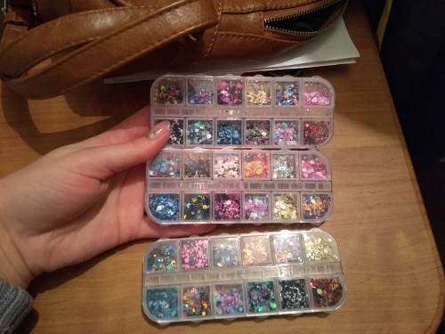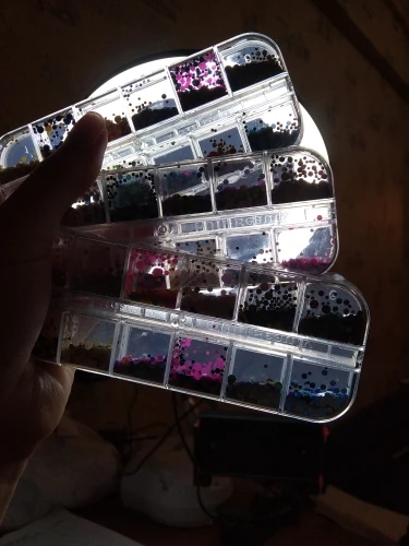Блестки классные, сверкают безумно красиво. Но маловато, заполнен на ⅓ каждый отсек