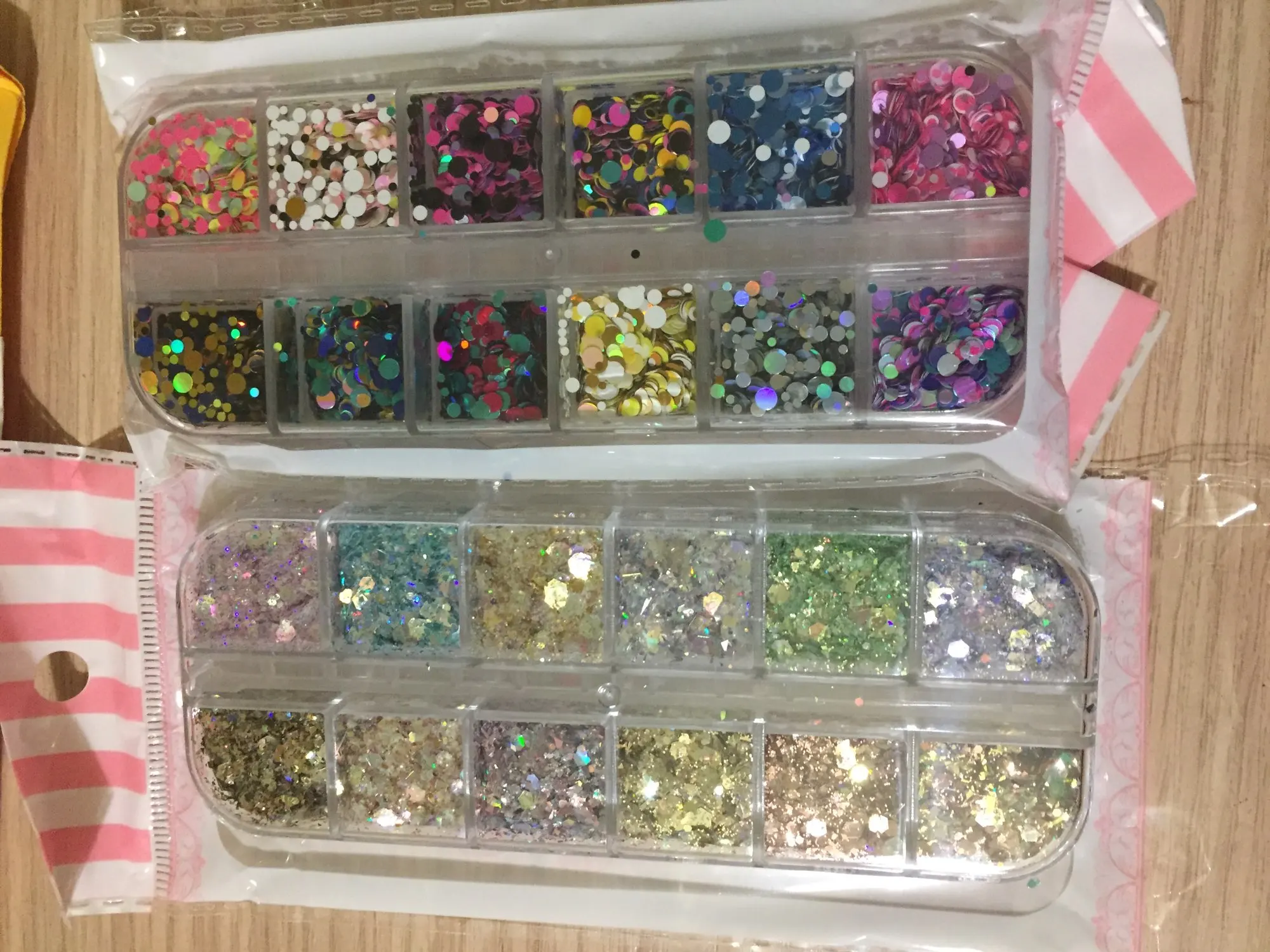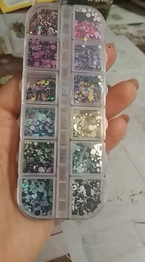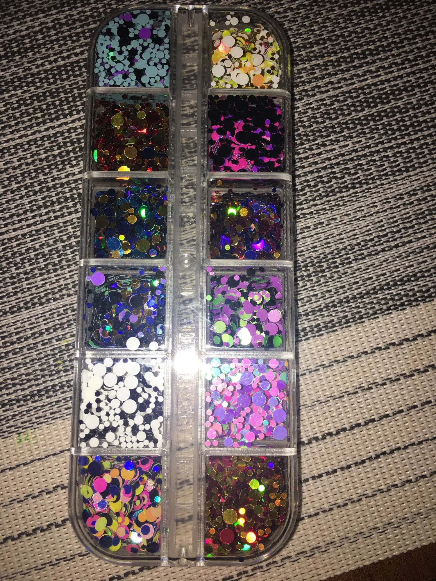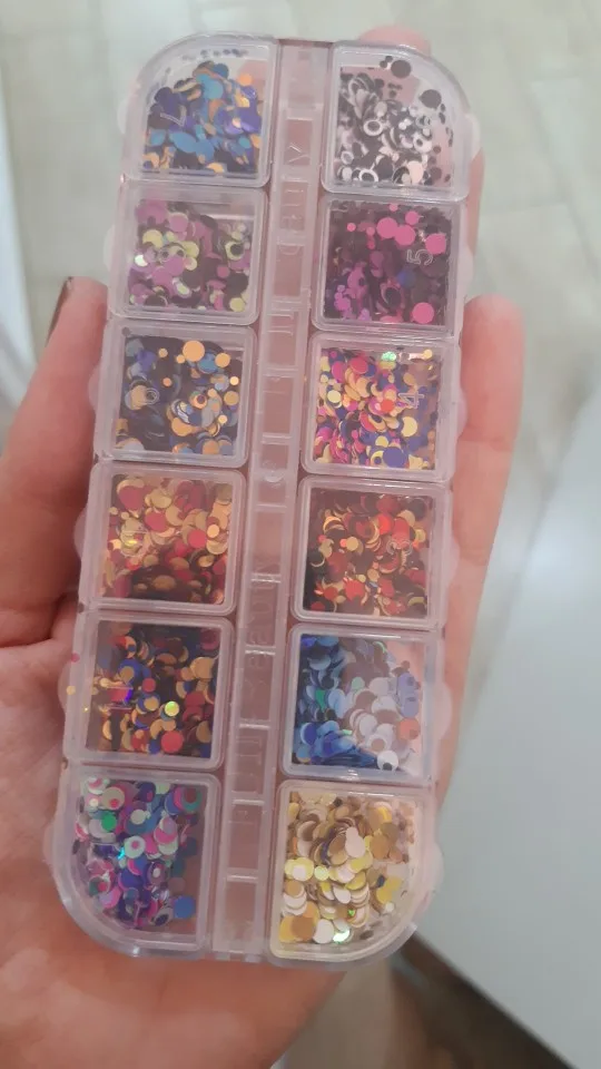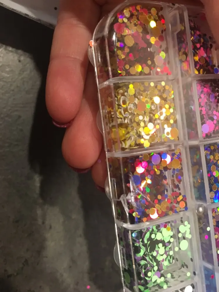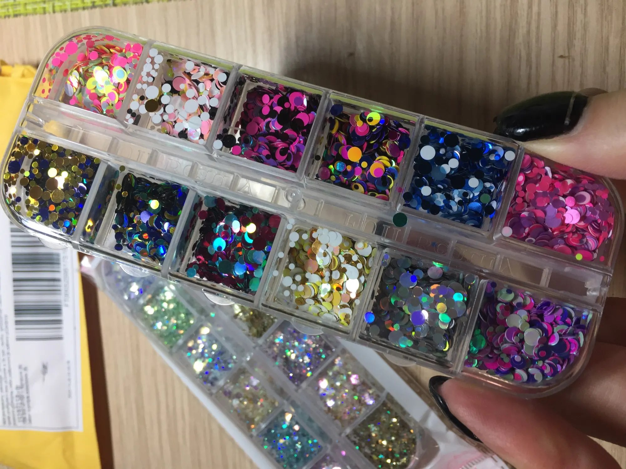 Блестки классные, сверкают безумно красиво. Но маловато, заполнен на ⅓ каждый отсек