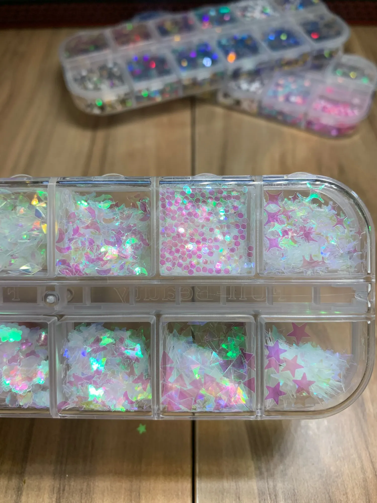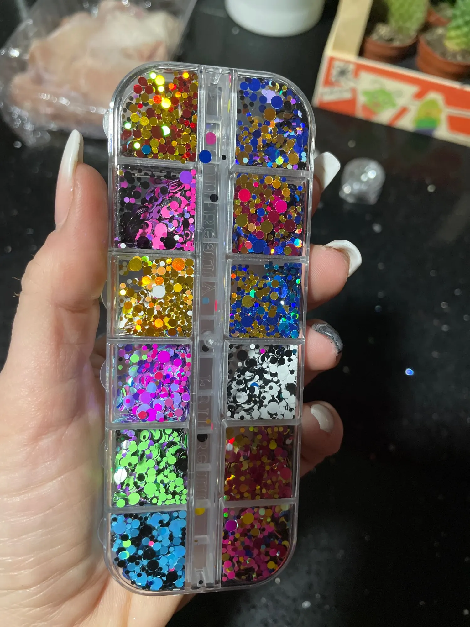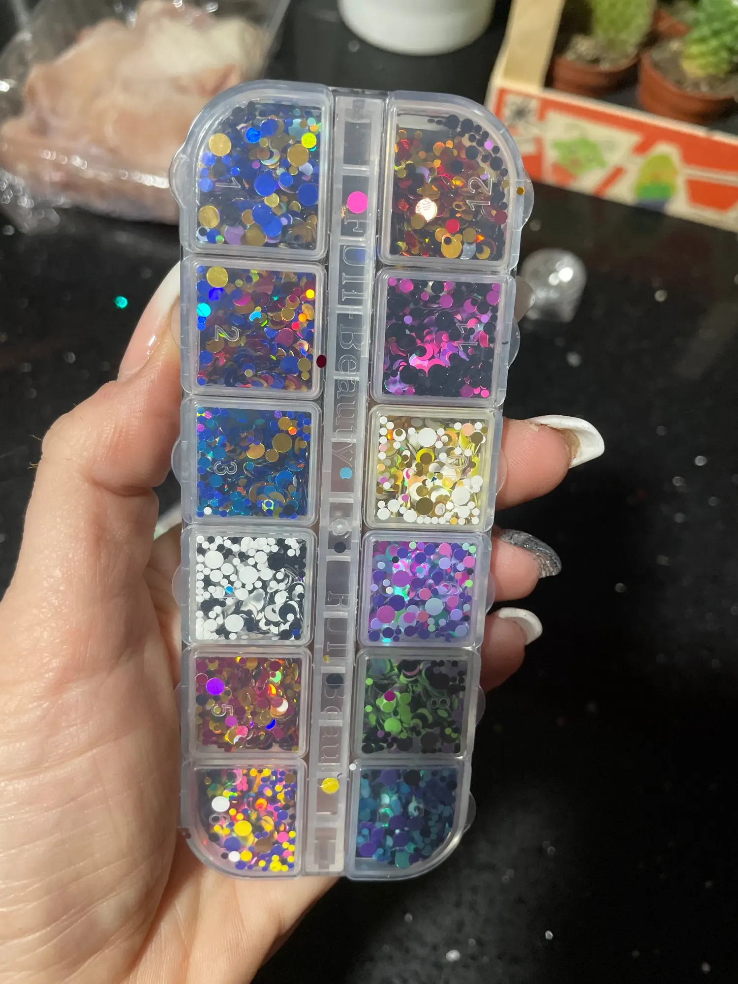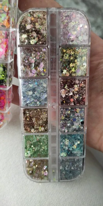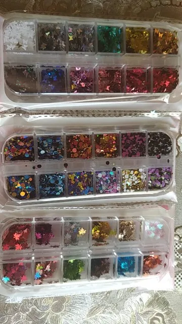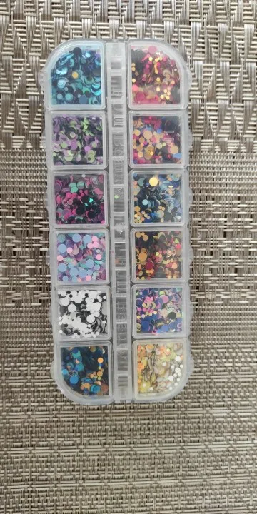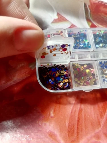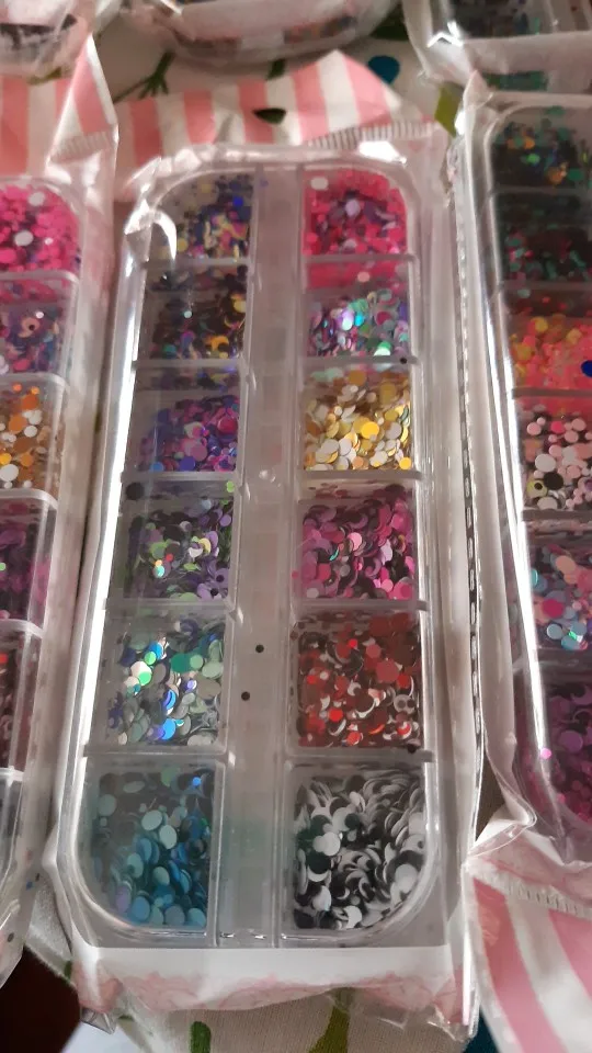 Блестки классные, сверкают безумно красиво. Но маловато, заполнен на ⅓ каждый отсек