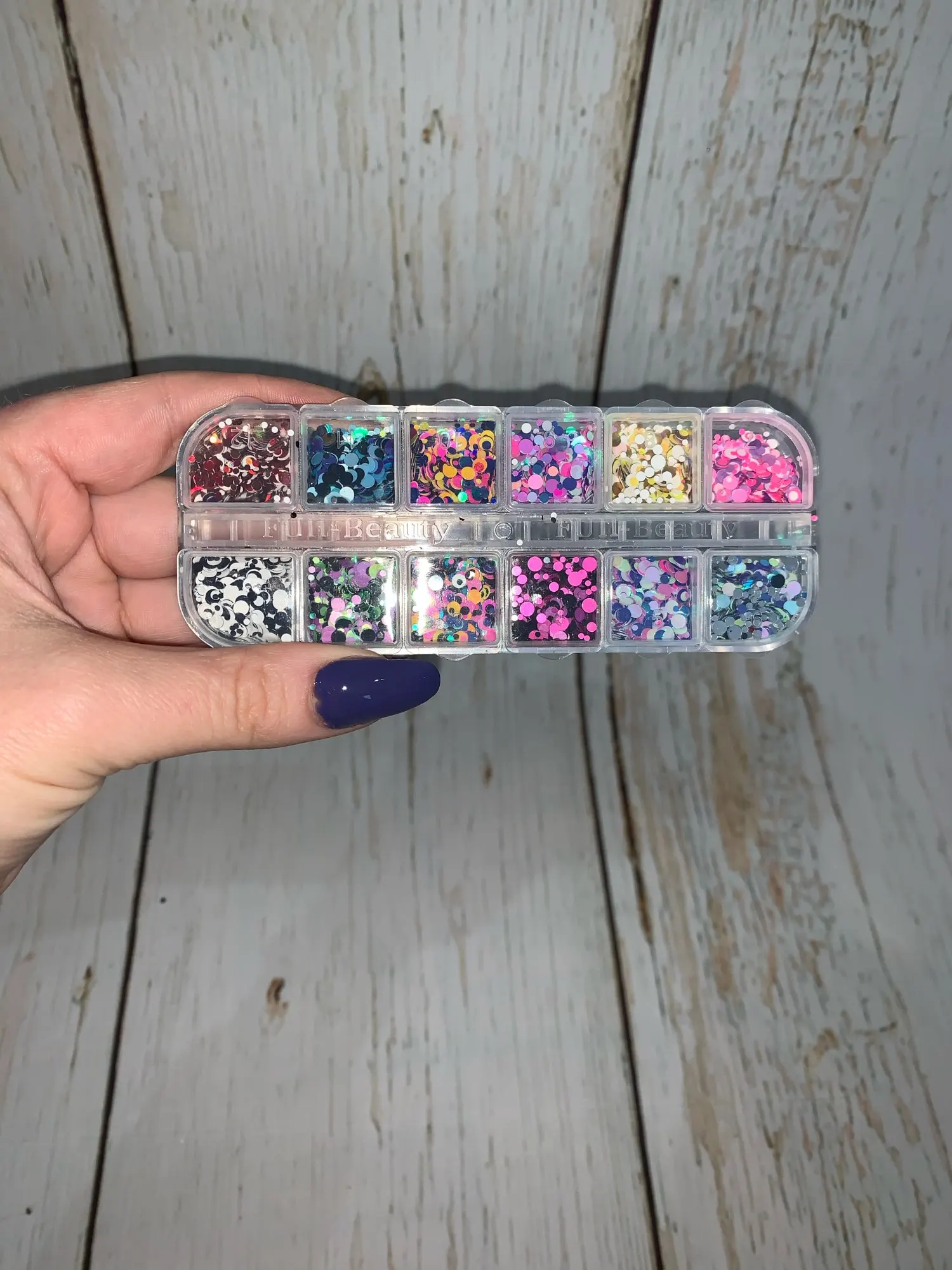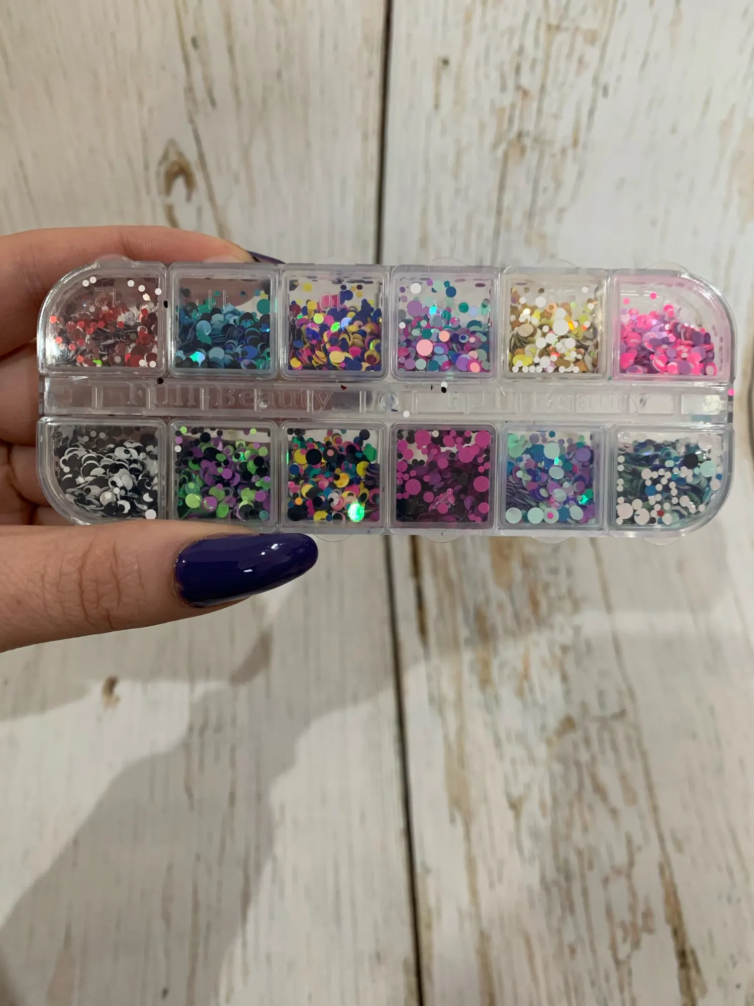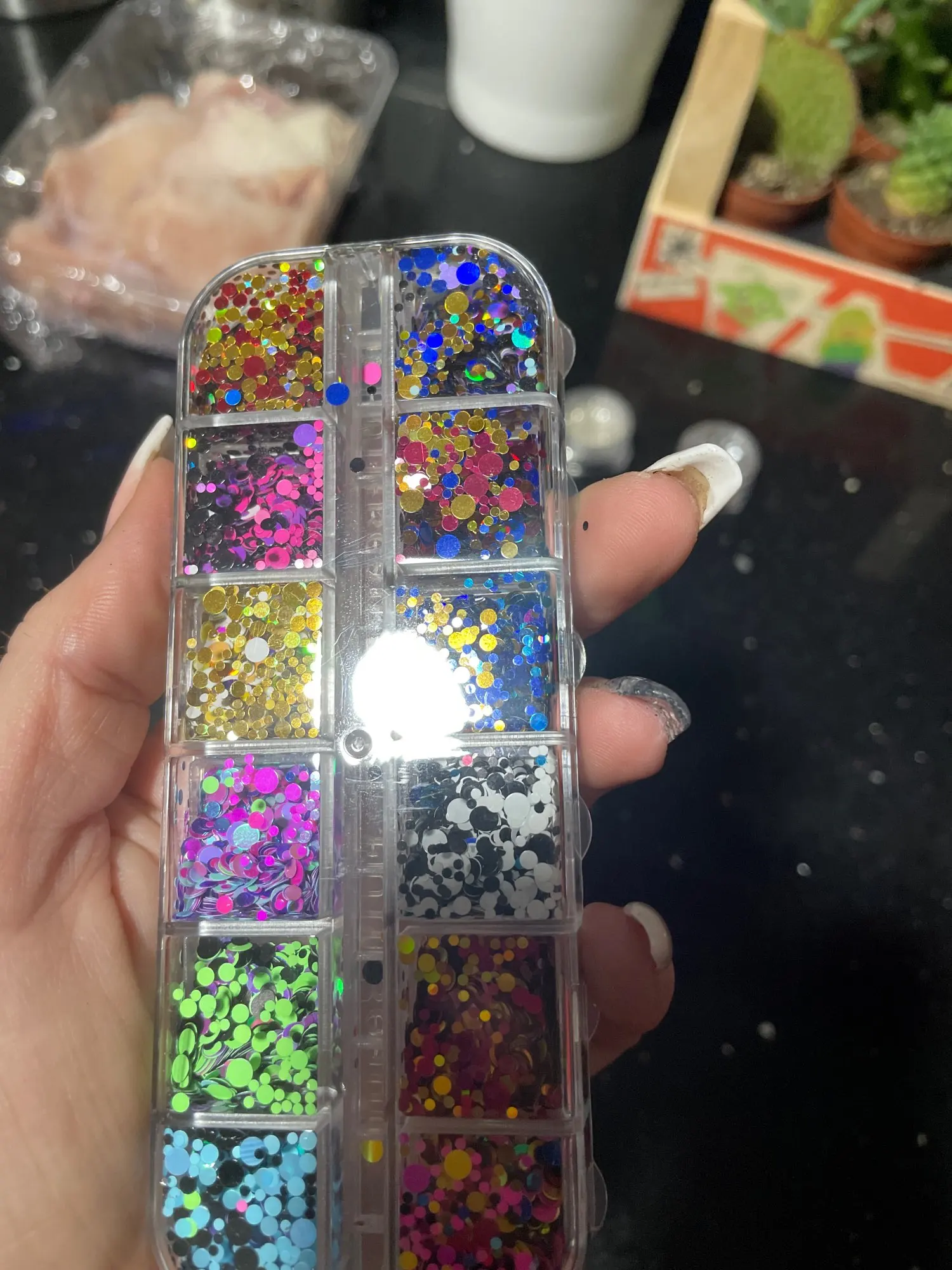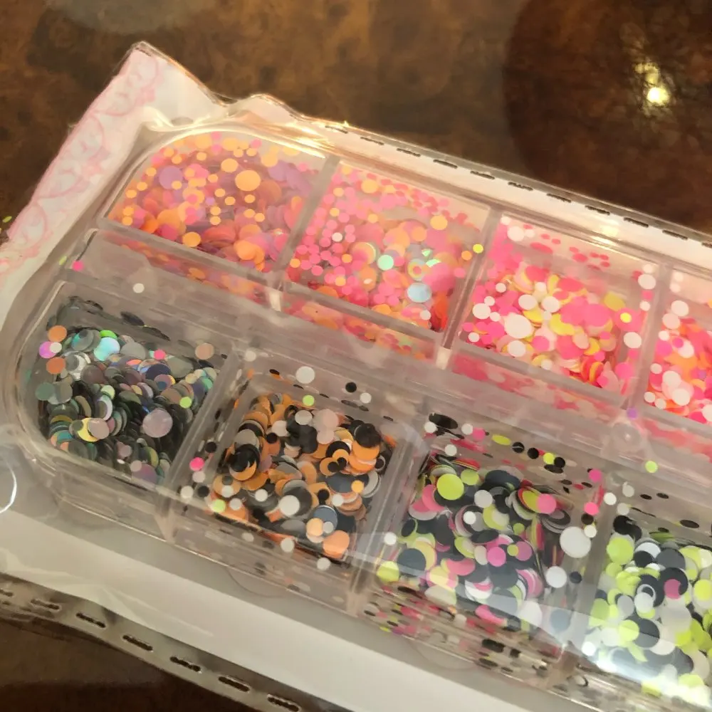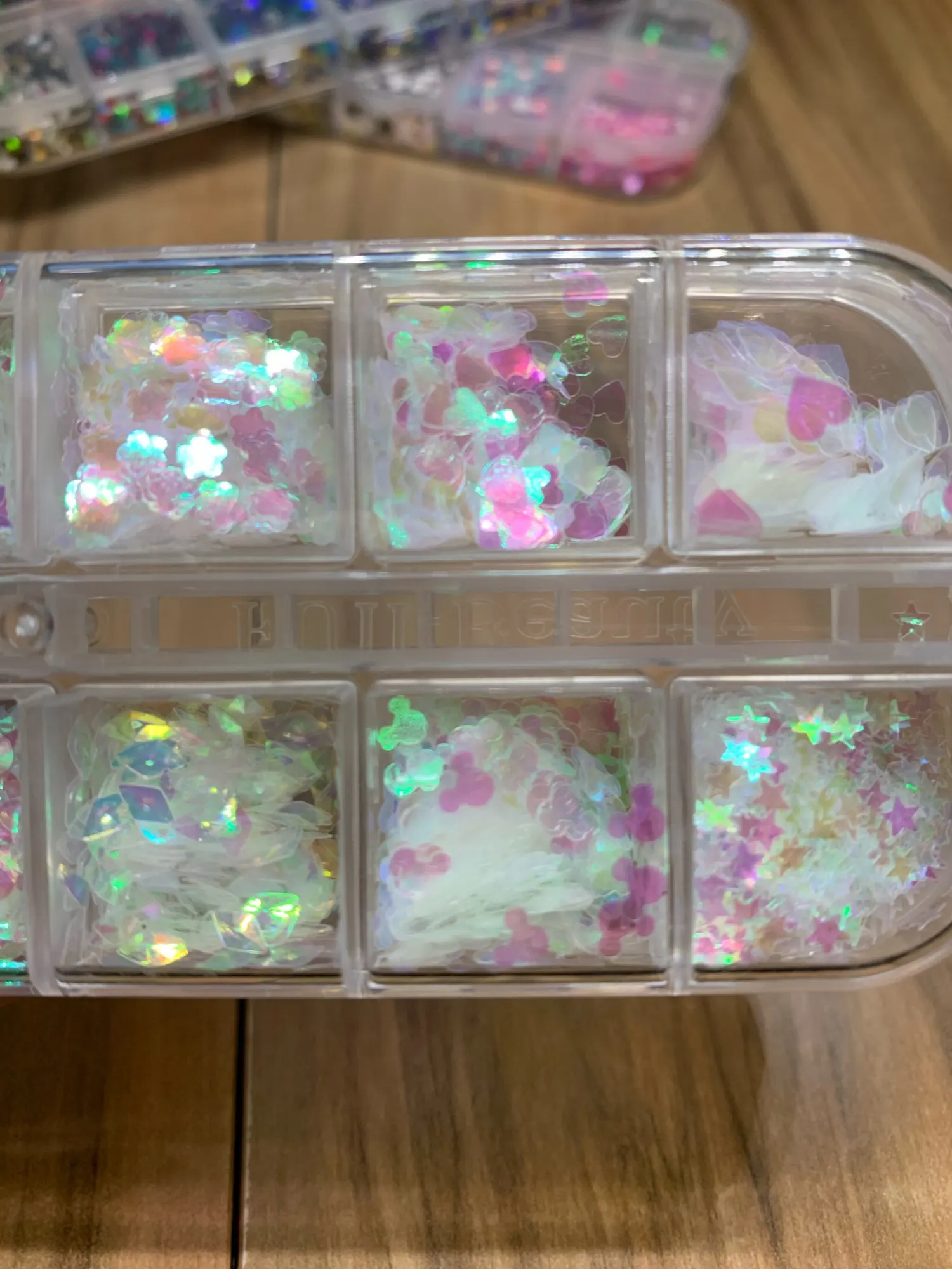 Блестки классные, сверкают безумно красиво. Но маловато, заполнен на ⅓ каждый отсек