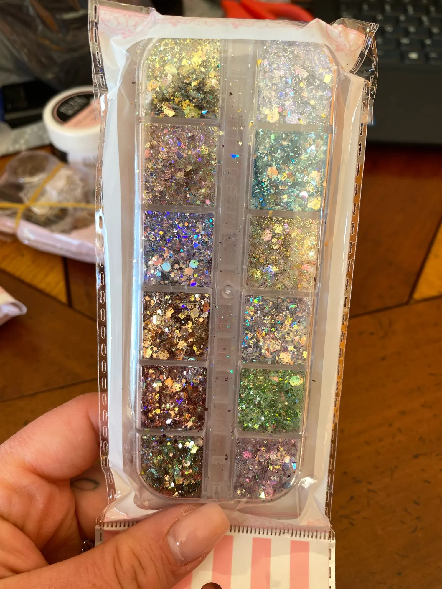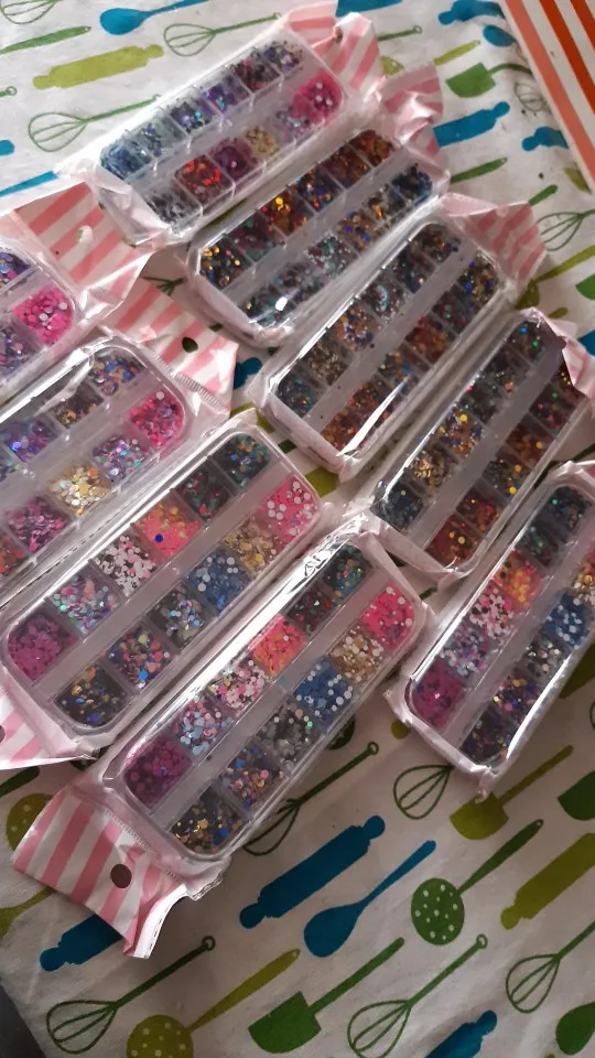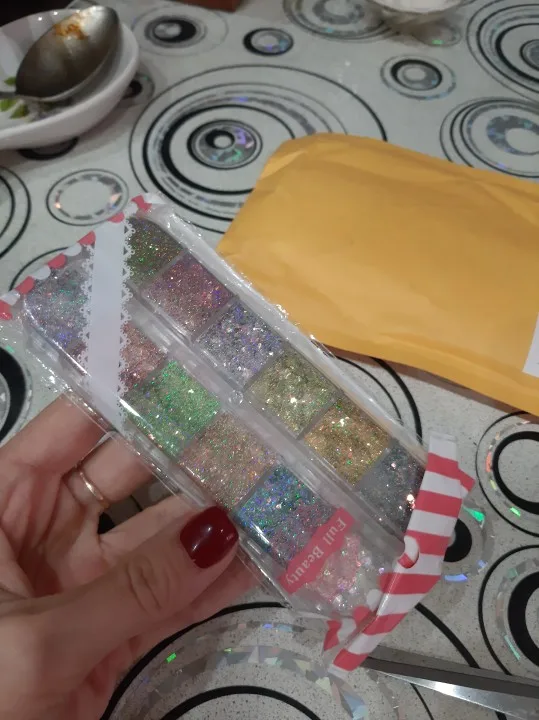 Блёстки суперские, очень яркие, достаточно много в каждом отсеке, хватит на долго)) Заказала 03.09.20, кинули в ящик 06.10.20, трек не отслеживался, думала придут гораздо позже.