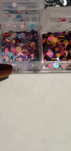 Замечательные блестки! Я бы назвала только один недостаток (как бы это не странно было): контейнеры закрыты так, что без мужской силы не обойтись. Наверное, просто продавец переживает за доставку, чтобы ничего не высыпалось. А это, в свою очередь, говорит о его добропорядочности и надежности.