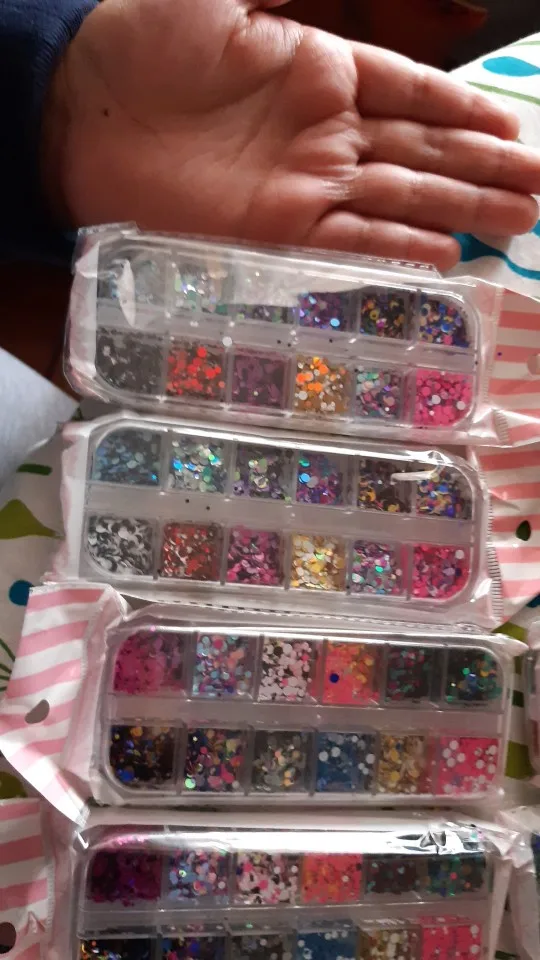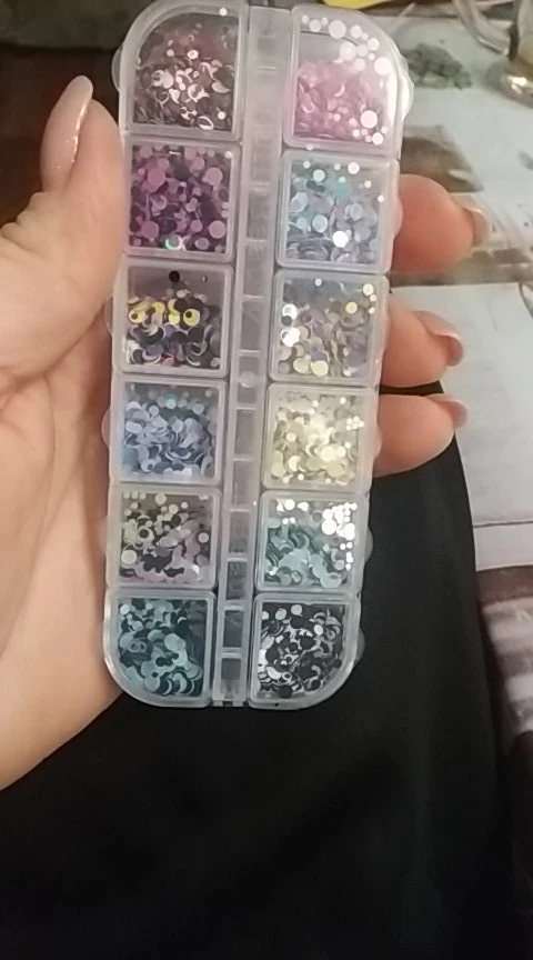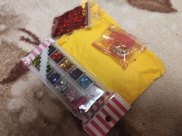 запакован товар идеально. сам футляр в пупырке. на ячейках пленка. отправили быстро, шел ну такое, но я привыкла что в хабаровск долго идут мелкие посылки. сами блестки хорошие, разного размера. продавцу спасибо за чудесный товар
