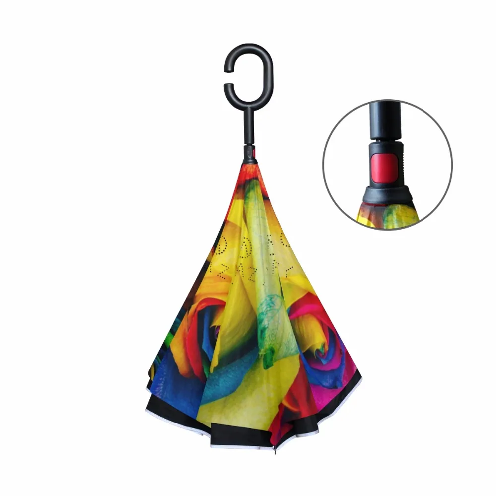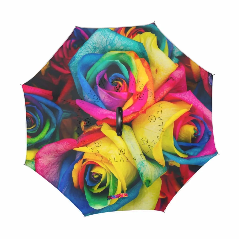 Радужный тонированный цветок розы двухслойный перевернутый зонтик женский пляжный водонепроницаемый обратный зонтик дождевик для женщин для автомобиля
