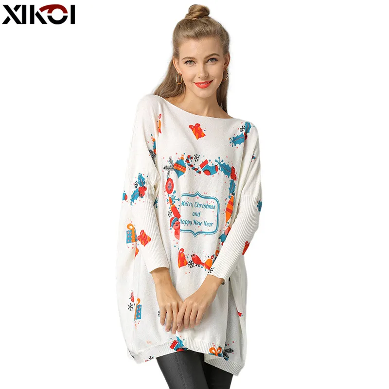 Женский трикотажный свитер XIKOI, Повседневный пуловер с принтом на Рождество и новый год