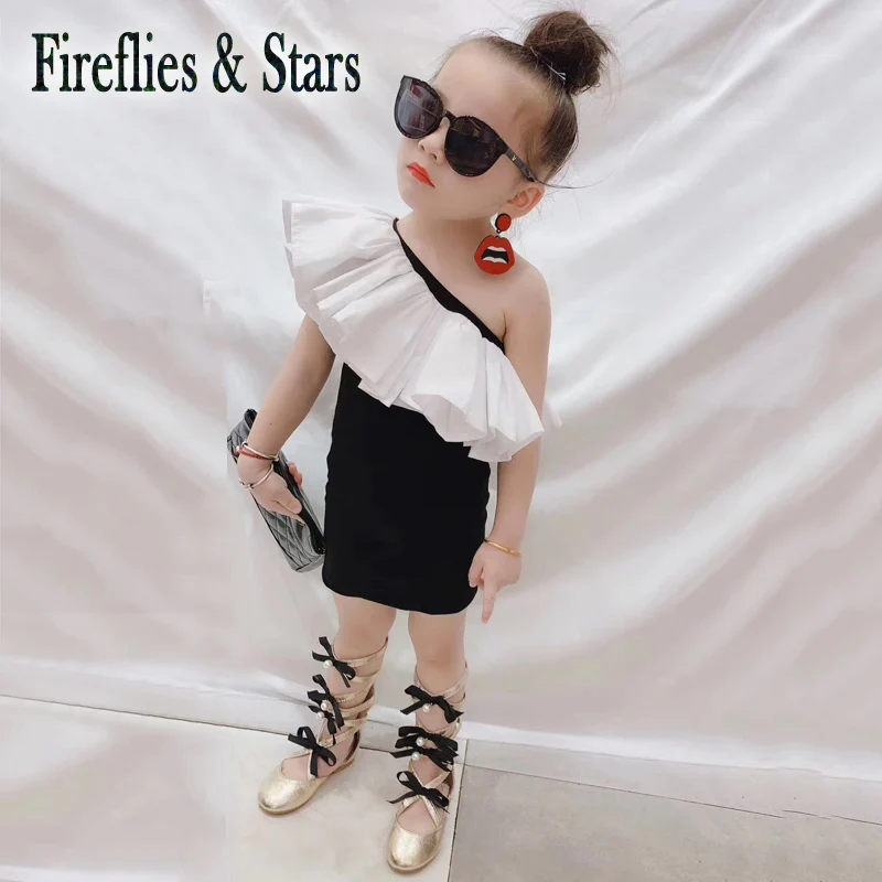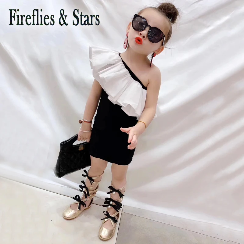 Летнее платье-жилет для девочек, детское платье на бедрах, Детская уличная одежда, одежда с оборками на одно плечо, от 2 до 12 лет