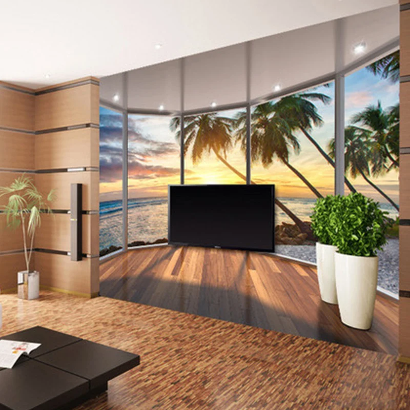 Настенные 3D-обои на заказ, Настенная картина с изображением окон, Морского Пейзажа, рассвета, для гостиной, ресторана, Декор для дома