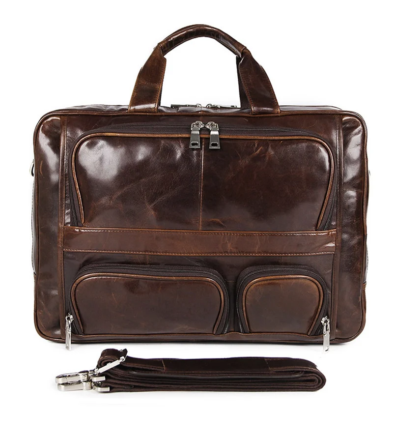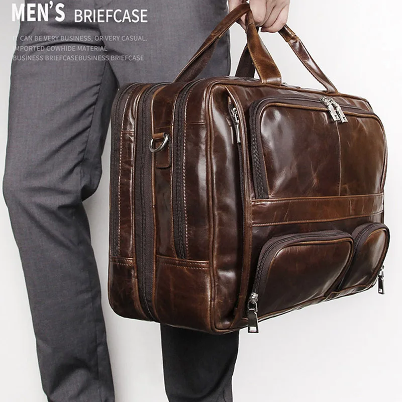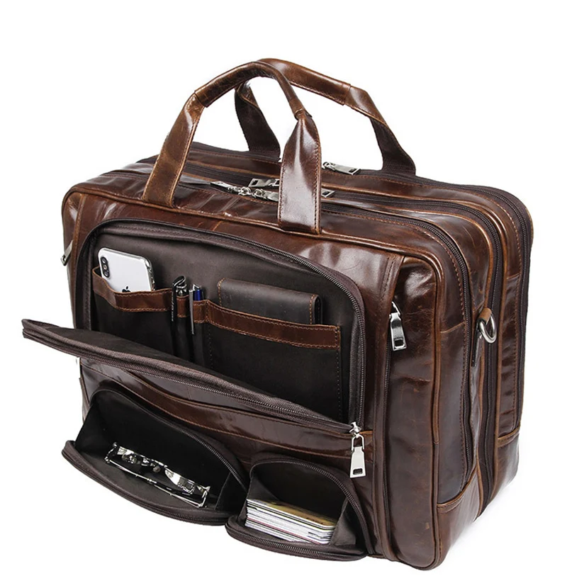 Мужской портфель из натуральной кожи коричневый двойной PC карманы 17 "Настоящая сумка из воловьей кожи для ноутбука деловая сумка через плечо высокое качество