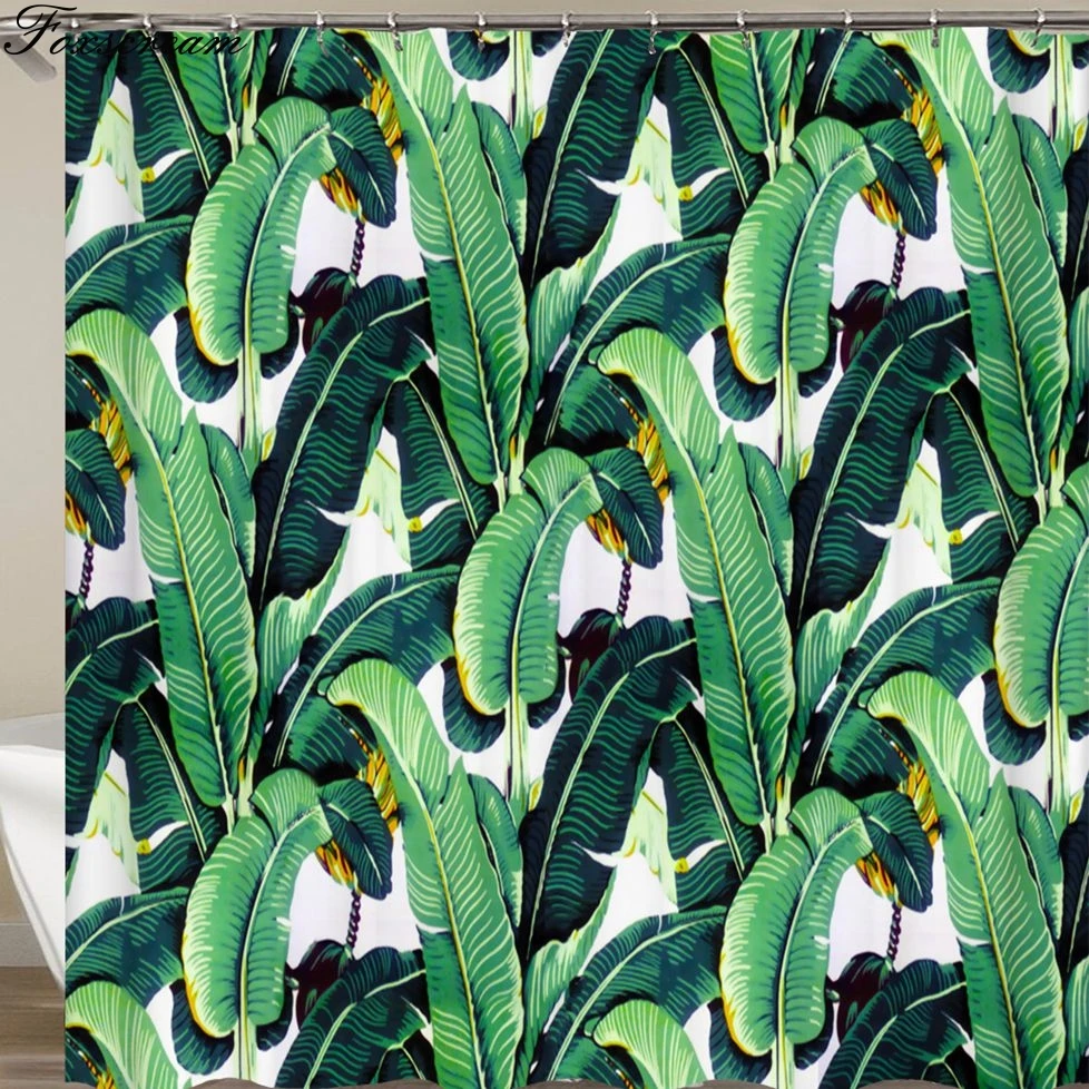 Тропическая душевая занавеска для ванной комнаты, водонепроницаемая шторка из полиэстера с зелеными листьями для ванной комнаты
