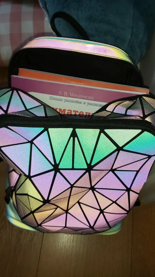 Женский складной рюкзак с геометрическим рисунком, маленькие школьные ранцы для девочек-подростков, светящиеся рюкзаки с голограммой, повседневный ранец