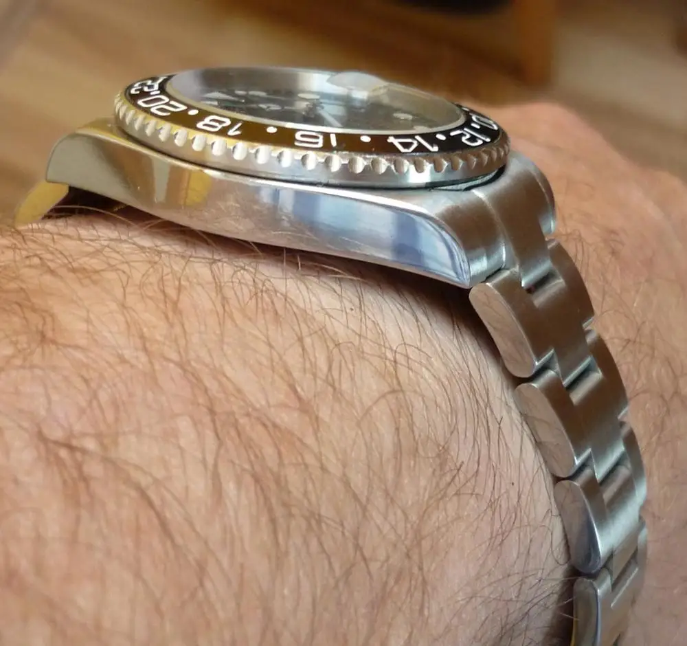 Я купил это как замену OEM браслета на мой GMT sub homage. Идеально сочетается с чехлом без зазоров. Регулировка длины осуществляется с помощью винтов. На застежке 3 уровня Микрорегулировки. Вам нужно будет использовать прилагаемый инструмент для настройки Микрорегулировки. Я, вероятно, куплю еще один, чтобы иметь запас на руке.
