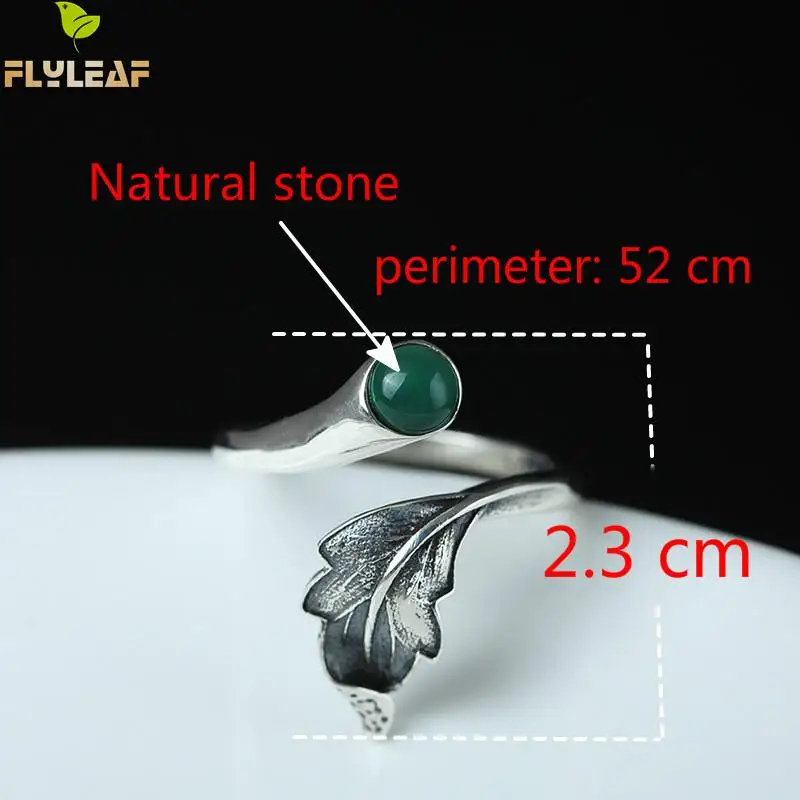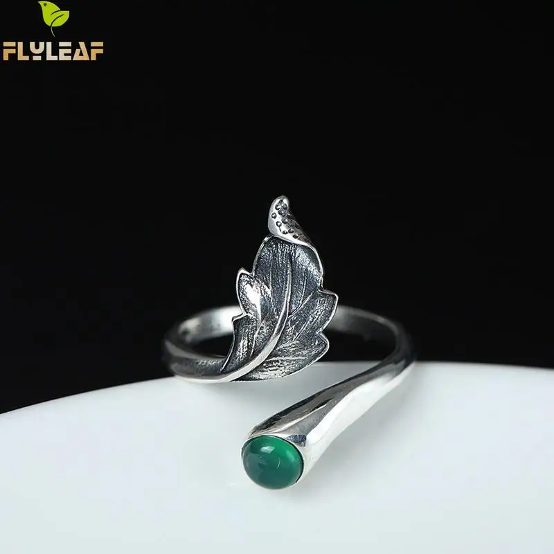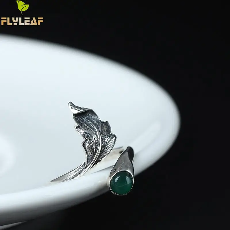 Женское винтажное Открытое кольцо из стерлингового серебра 925 пробы с натуральными нефритовыми перьями и листьями ювелирные изделия в китайском стиле