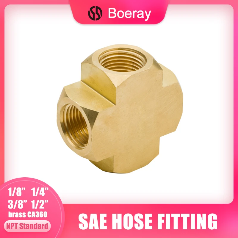 Фитинг из латунного шланга, 2 шт., 14 "38" 12 ", 4-сторонний крестообразный фитинг тройник с внутренней резьбой NPT (модель 3950)