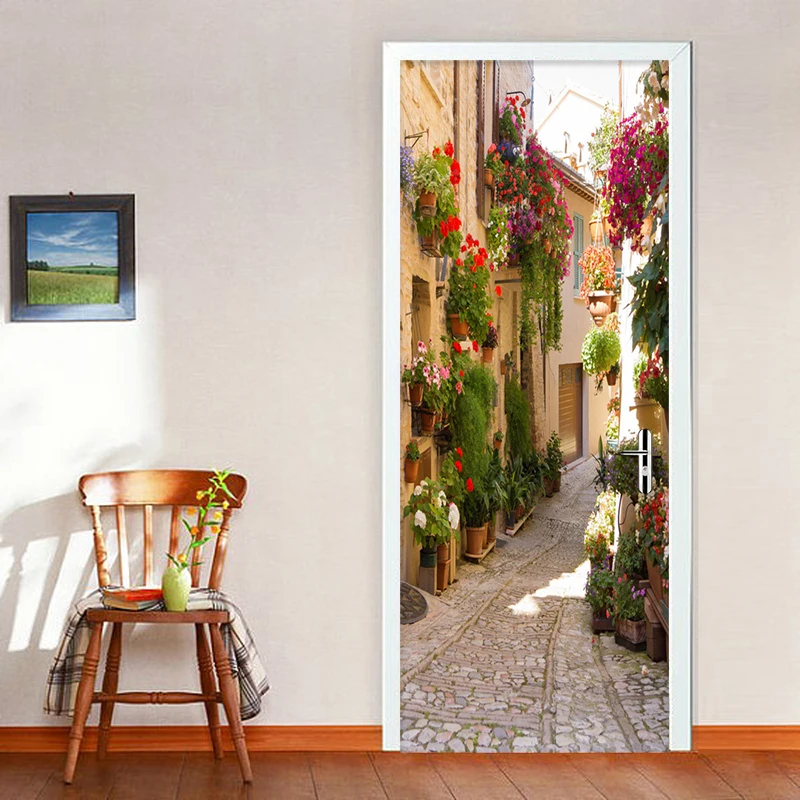 Самоклеящиеся 3D-обои из ПВХ, водонепроницаемые настенные фотообои, наклейка на дверь, Европейский уличный пейзаж, кафе, столовую, фотообои