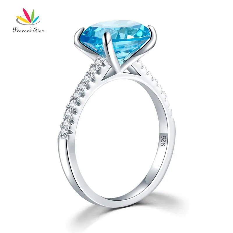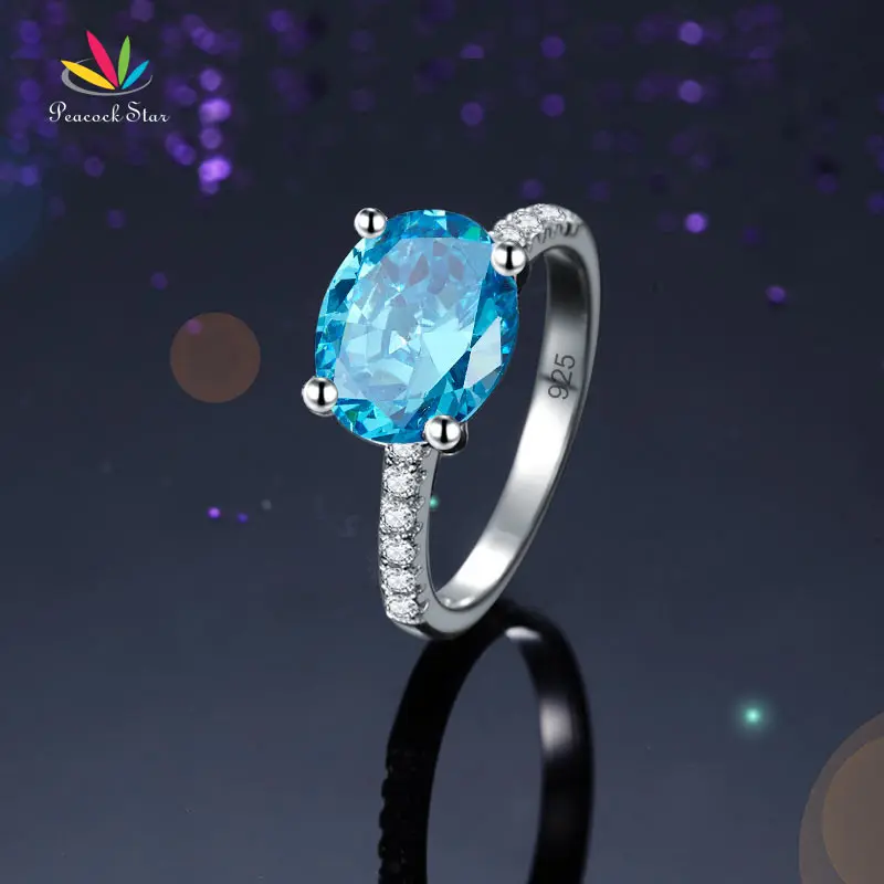 Павлин звезда Твердые 925 пробы серебро 4 карат синий овальный юбилей кольцо Роскошные ювелирные изделия CFR8303