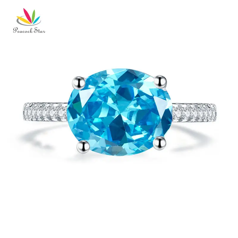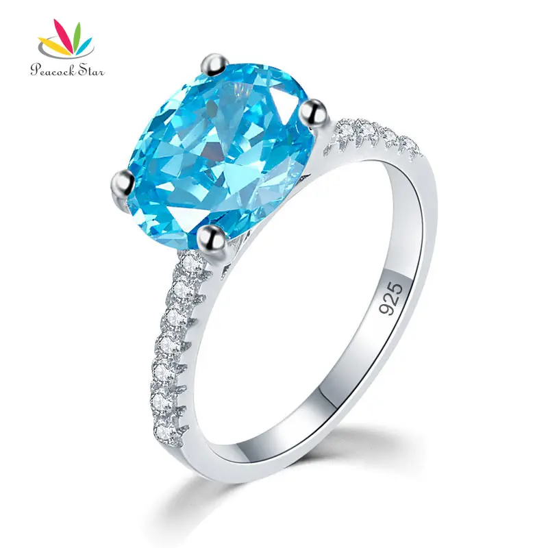 925 пробы серебро 4 карат юбилейное кольцо огранка в форме овала, голубой цвет создан стразами камень роскошные ювелирные изделия