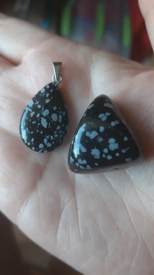 Подвеска не обсидиана Невада. Это пластик. Я поставил камень обсидиана Невада рядом с ним, чтобы сравнить снежинки. На кулоне они не похожи на чашки, а на пятна. Не холодно, как камень рядом с ним. Очень разочарован. I Want My Money back.