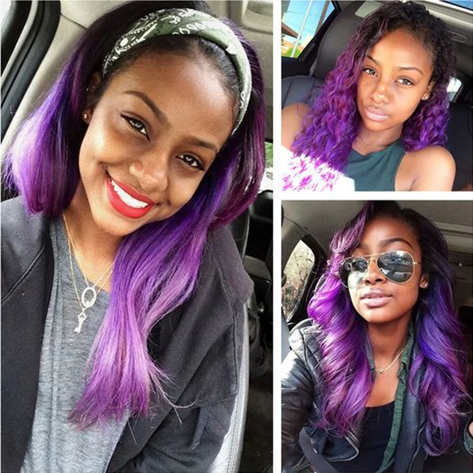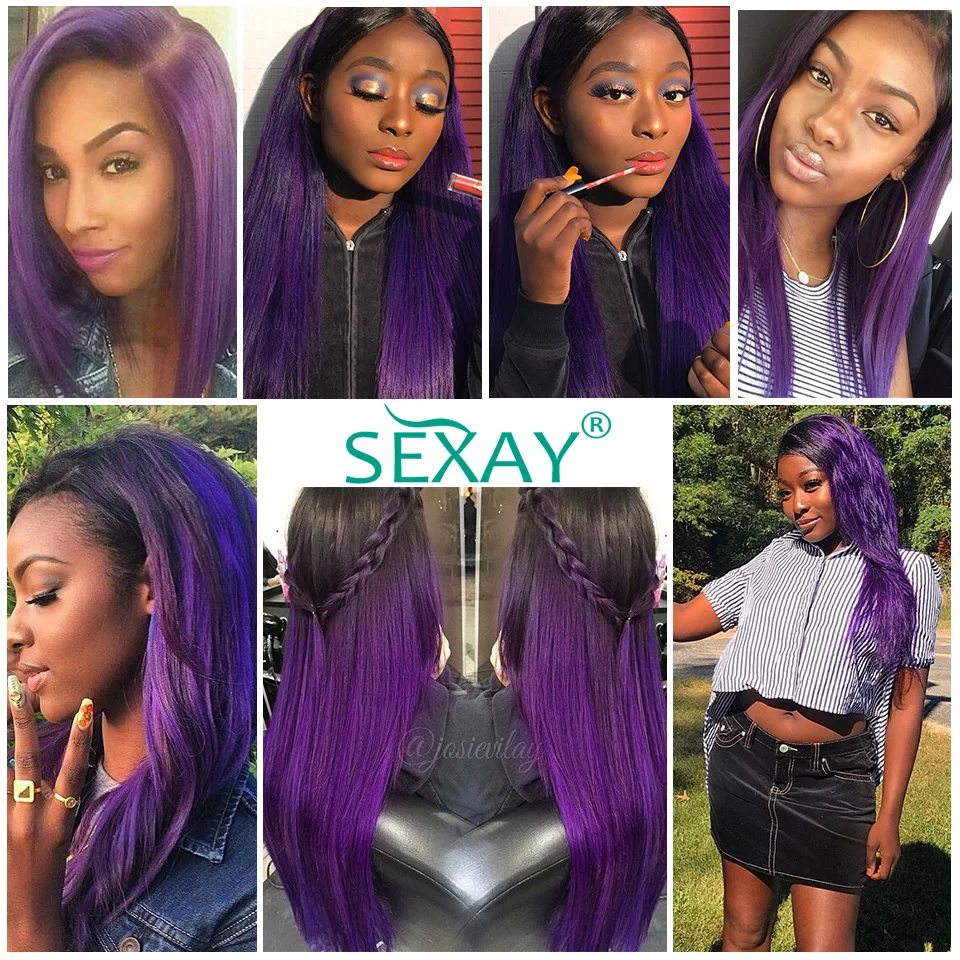 Бразильские прямые человеческие волосы Sexay с эффектом омбре, пряди из 34 прядей, партия 1Bпурпурные волосы с темными корнями, двухцветные пряди волос с эффектом омбре