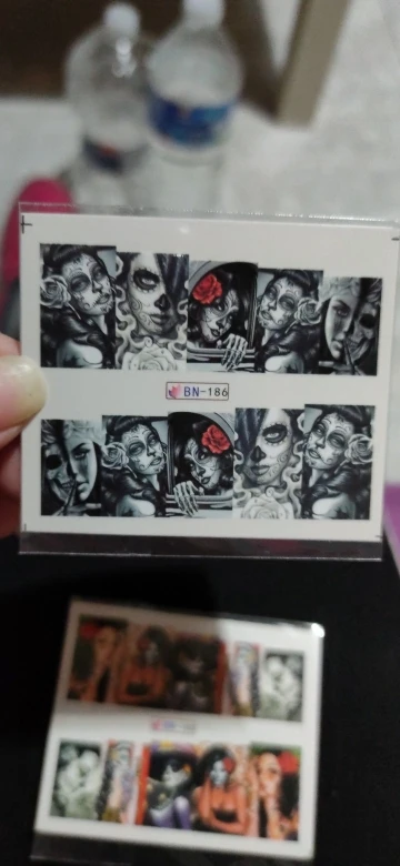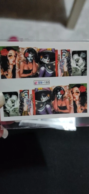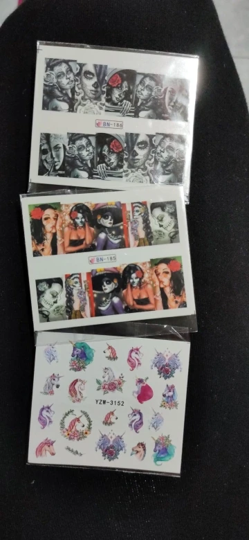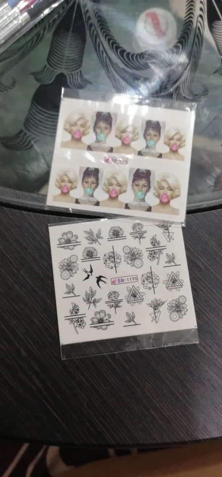 Он прибыл быстро, менее месяца. Это наклейки, которые немного отрезаны, они попадают в воду, а затем помещают в ноготь, и при необходимости излишки срезаются. Важно снять защитный прозрачный пластик! Что иногда вы не заметите, и когда вы положите их в воду, они застревают, и это больше не стоит слушать .. Обычно я использую их много, и они хорошо работают. Они очень оригинальные. Я куплю снова.