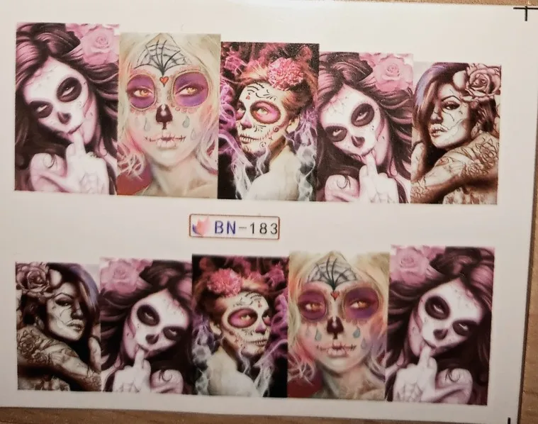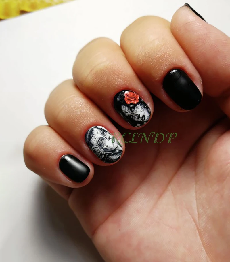 Водная наклейка на слайдер для украшения ногтей год, череп ведьмы с цветком розы, акварельные чернила, дизайнерские наклейки, лаковые аксессуары