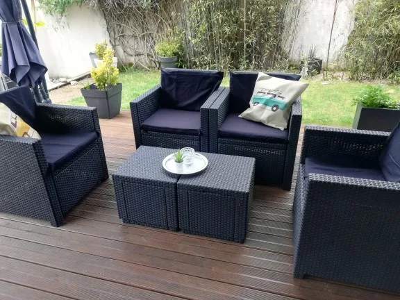 Это крышка тонкой ткани, но она хорошо сшита и делает свое дело. Я бы не стал помещать его в гостиную, потому что она проста, но на террасе, где солнце дает и съедает цвет, она идеальна. Если он сломается в конце лета, я куплю еще один такой же. Цена позволяет это.