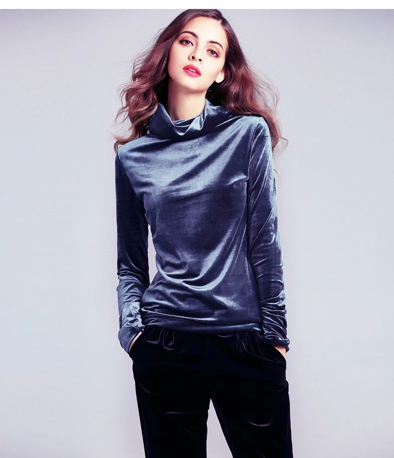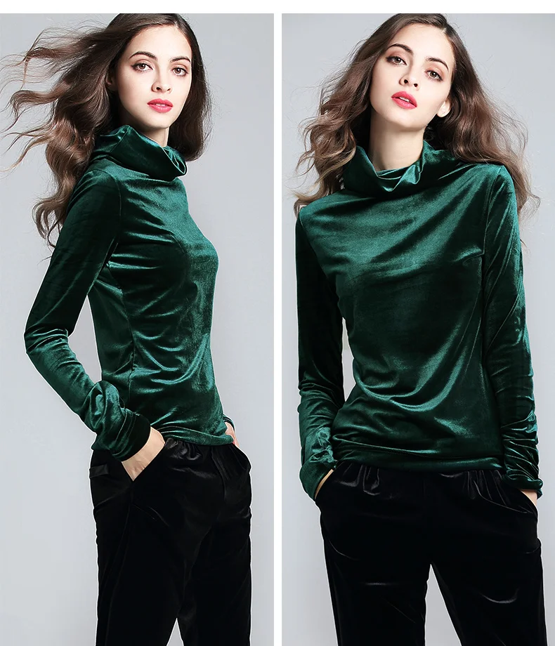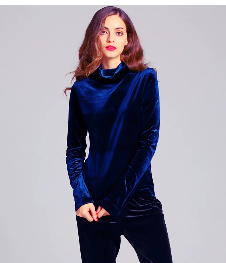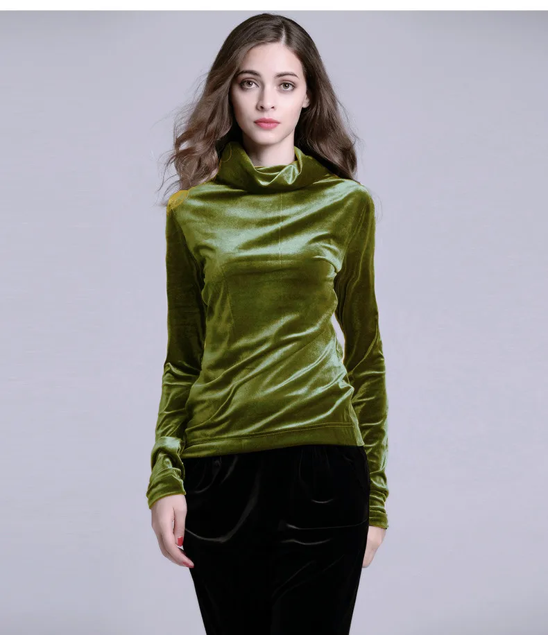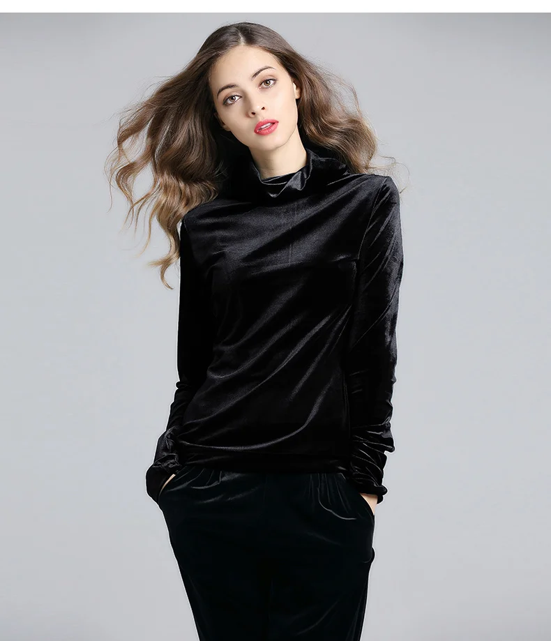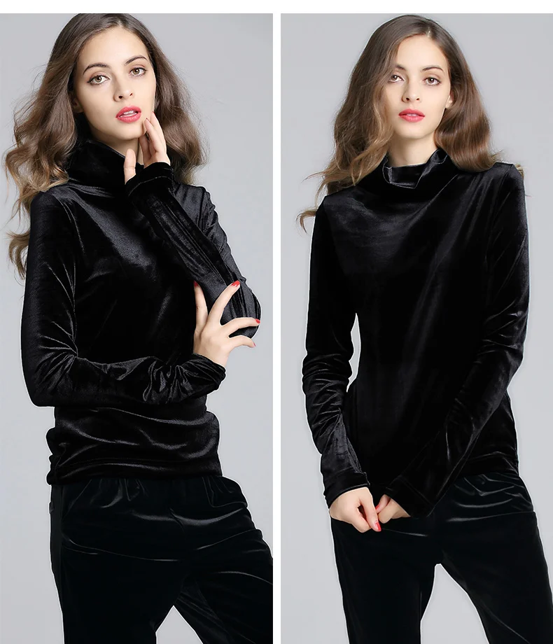 Женская бархатная блузка с длинным рукавом и воротником-хомутом