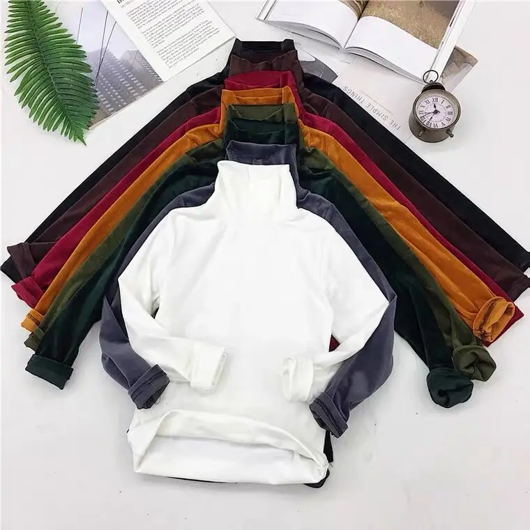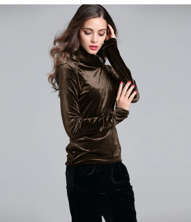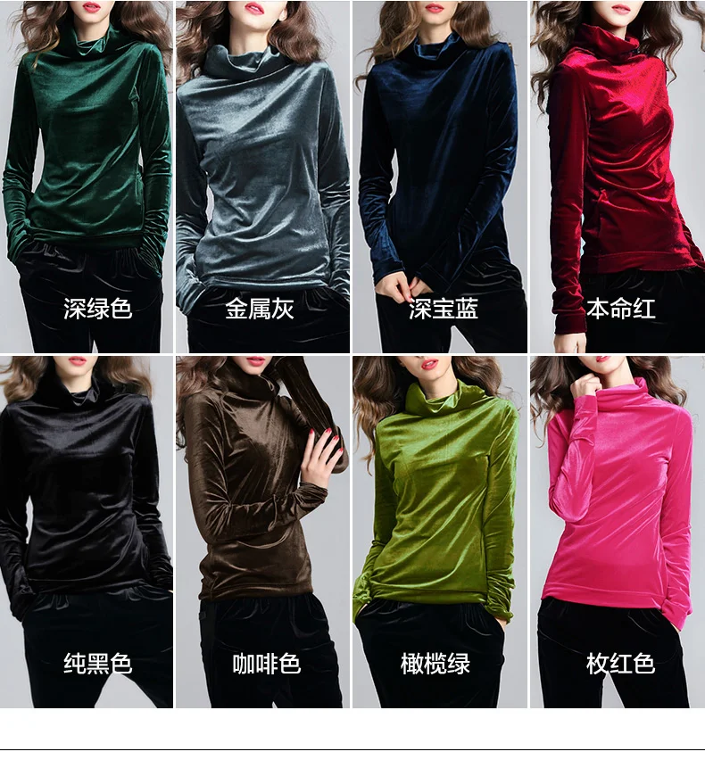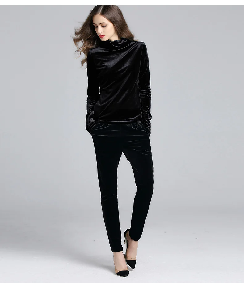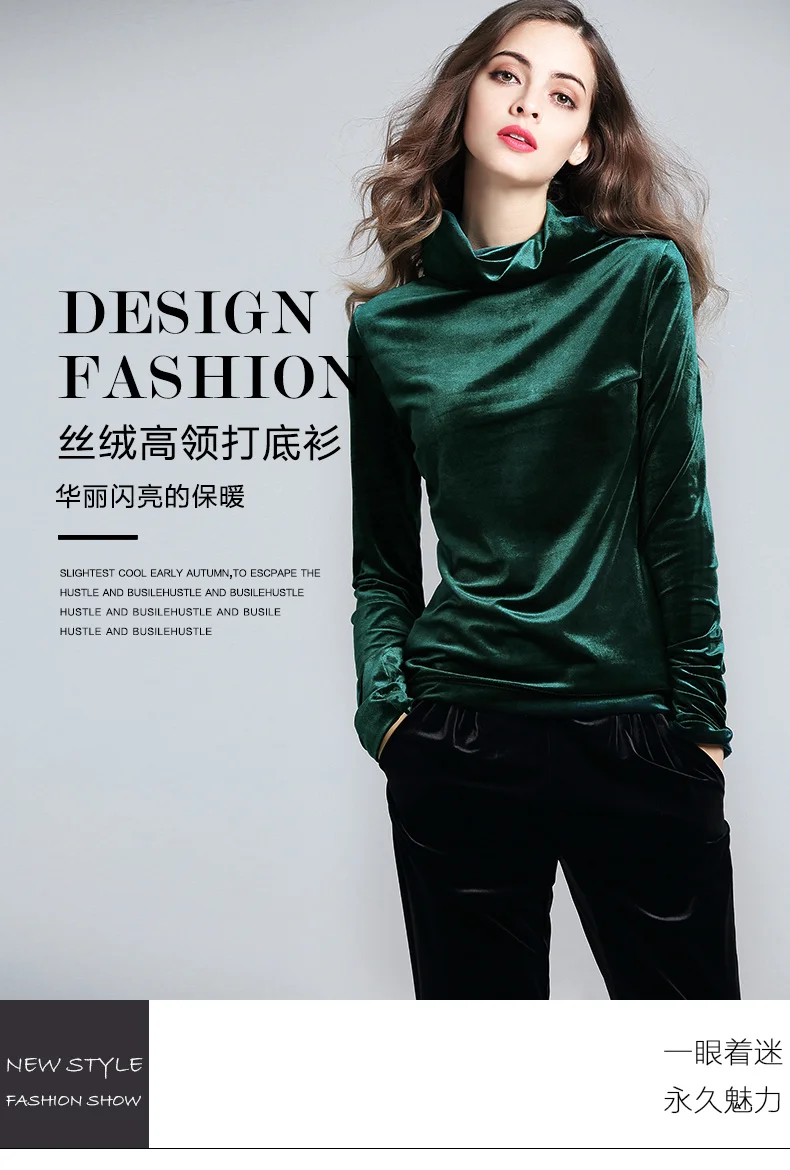 Женская бархатная блузка с длинным рукавом и воротником-хомутом