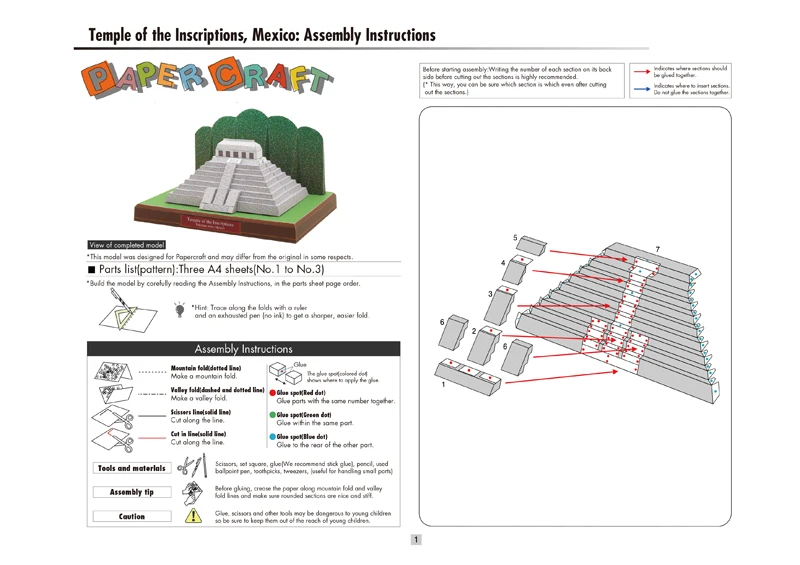 Храм надписей, Мексика крафт-бумага Модель 3D архитектурное здание DIY обучающие игрушки ручной работы игра-головоломка для взрослых