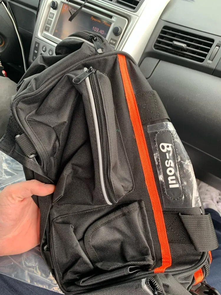 Сумка с несколькими карманами, интересна для хранения его телефона, банки, еды. Застежка кажется хорошим качеством. Хорошая сумка по этой цене.