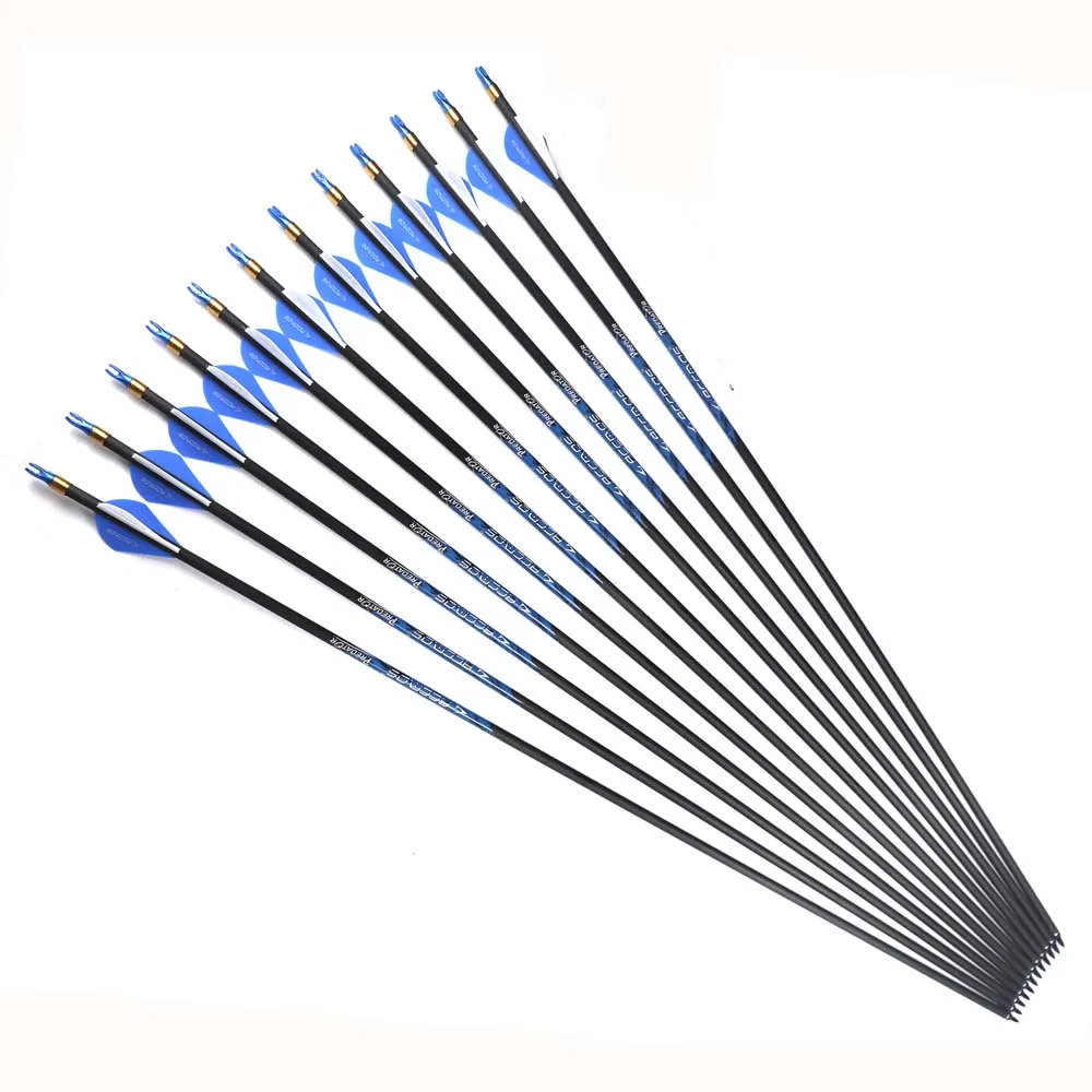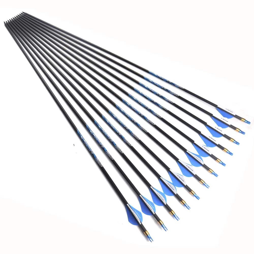 Стрелы из чистого карбона для стрельбы из лука, 12 шт., внутренний диаметр 300 мм, стержень 340, 400, 500, 600, 700, 800, для стрельбы из блочногоревольверного лука, для занятий спортом на открытом воздухе, охоты