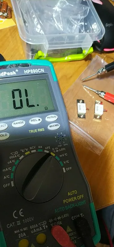 Резисторы новые, заказывал 2 шт. Сопротивление 49 или 49,5 ом. Замерял двумя приборами.