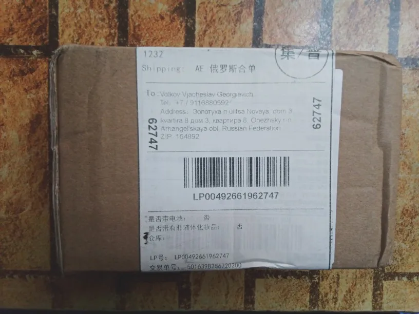 Страна: RU Доставка: Cainiao Standard For Special Goods 03.01.2022