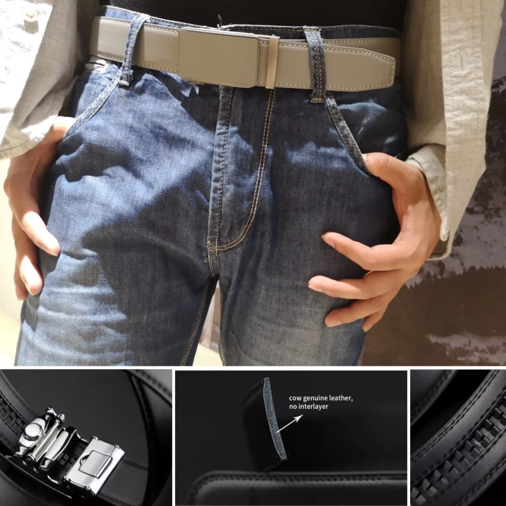 Известный бренд пояса для мужчин Одежда высшего качества из натуральной кожи роскошные кожаные ремни для мужчин ремень мужской металл Автоматическая пряжка 3,5 см серый ремень