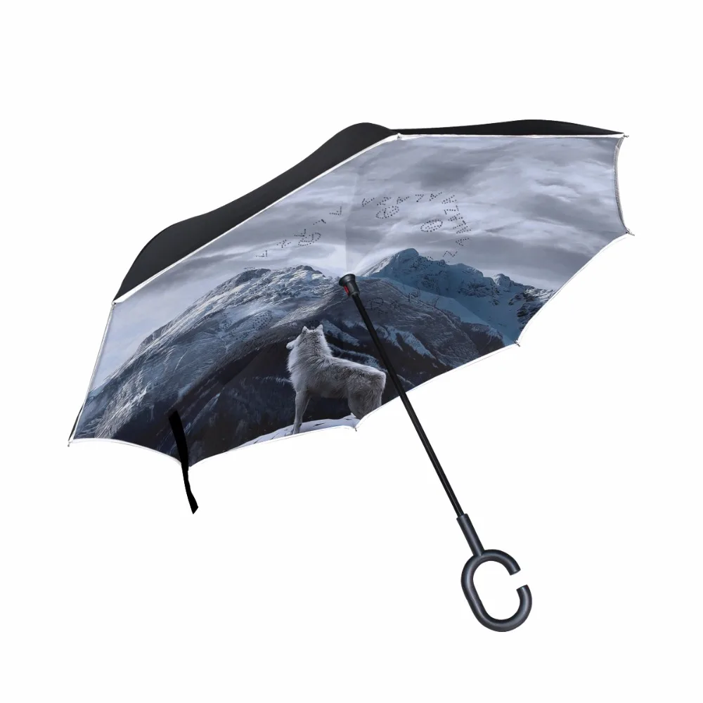 Зонт с двойным слоем волк, открытыйзакрытый в узком пространстве, креативный Графический ветрозащитный зонт для автомобиля, перевернутый зонт