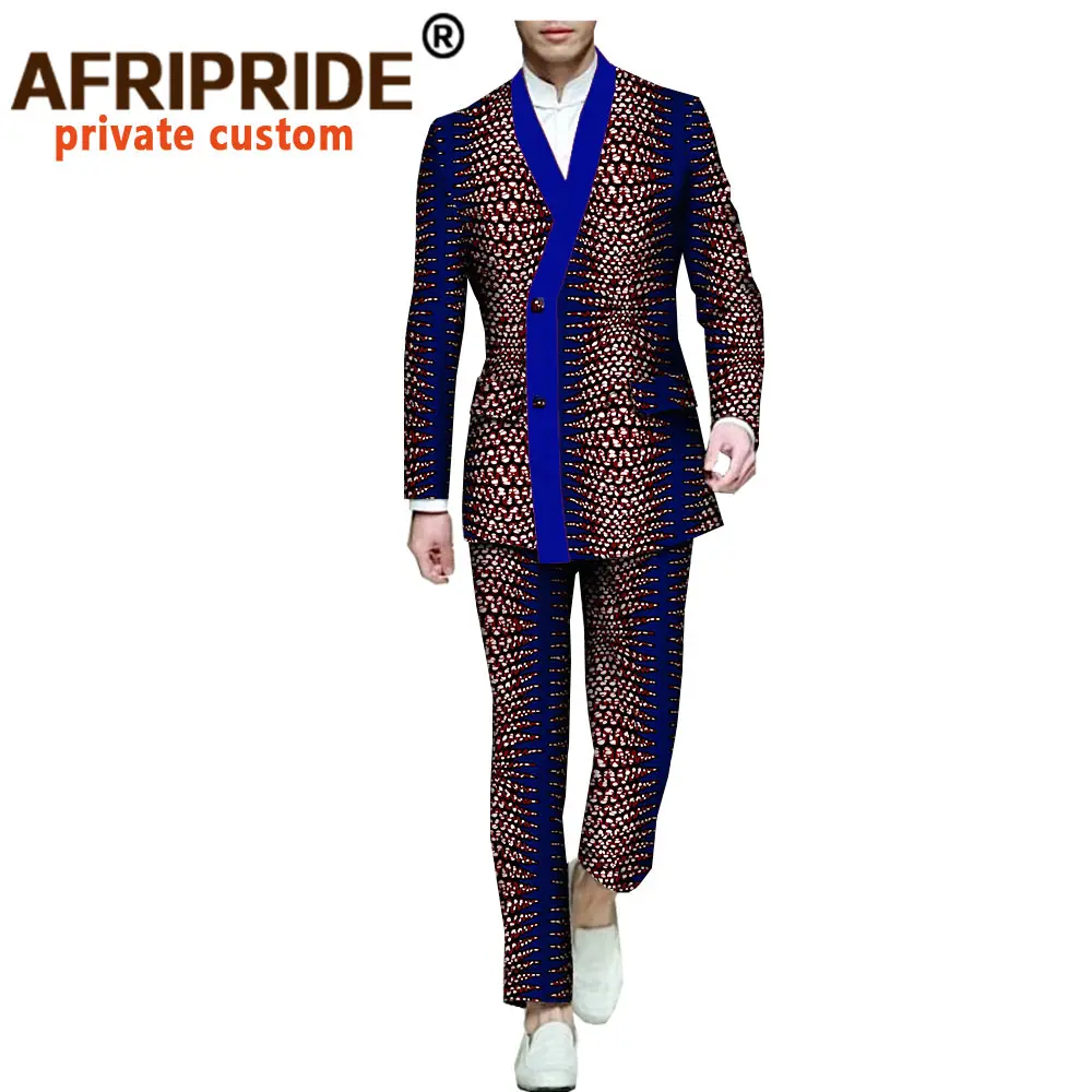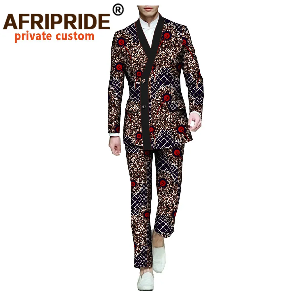 Мужской деловой костюм с Африканским принтом, однобортный пиджак с длинными рукавами AFRIPRIDE + брюки до щиколотки, приталенный стиль, A731607, 2020