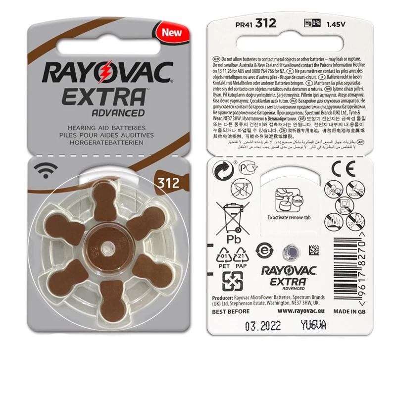 батарейки для слухового аппарата 30 ячеек5 карт Rayovac Экстра 1,45 слуховой аппарат усилитель звука в производительность слуховых аппаратов батареи. Цинк воздуха 312A312PR41 батарейки для слухового аппарата